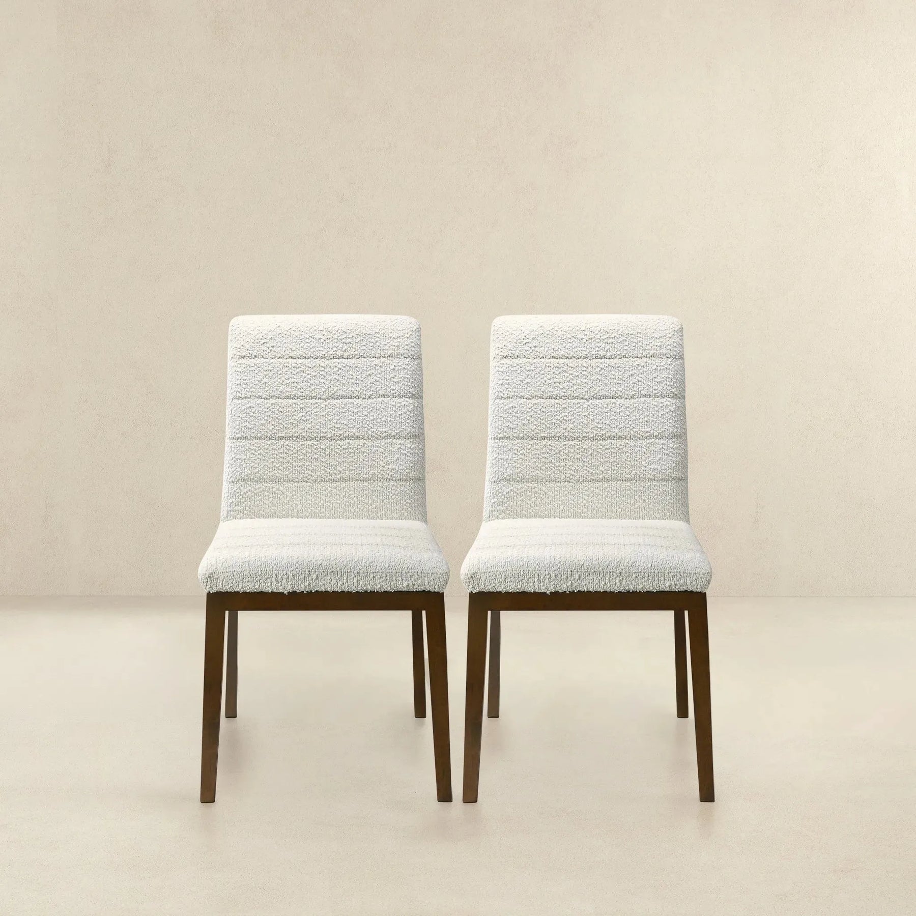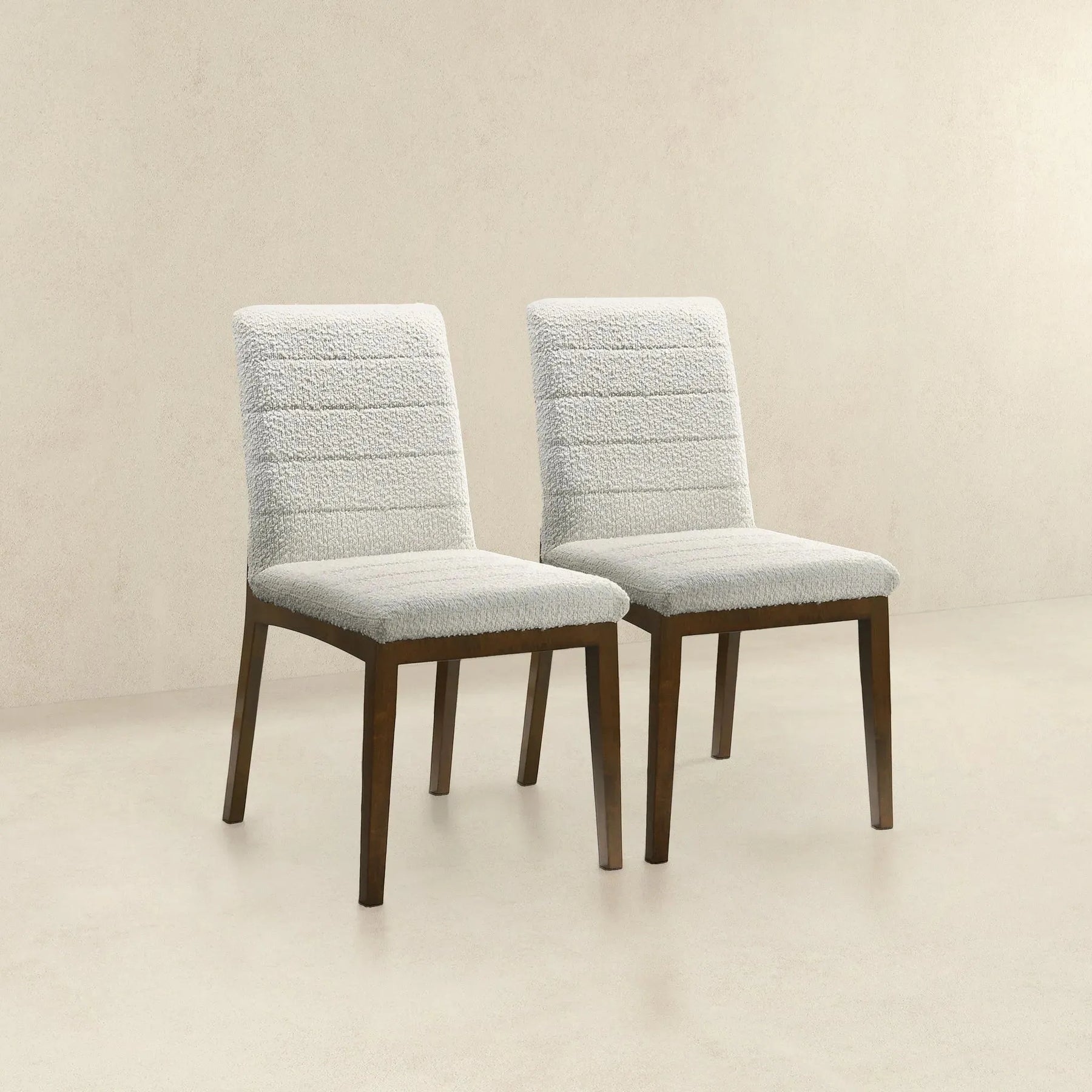 With a modern aesthetic, the Ines White Boucle Dining Chair (Set of 2) is designed to fulfill individual needs while adding a luxury experience in dining settings. Its solid frame provides great stability, while the boucle fabric is highly durable and easy to maintain, so you can keep them looking stylish without much effort. These chairs are made for your comfort and will easily accommodate you for hours, making them a great way to have guests around and enjoy longer meals with family. Whether you’re replacing an existing dining set or designing a completely new one, a boucle dining chair is a versatile design decision that adds both style and substance to your space. Make your dining room the perfect retreat with these on-trend, high end chairs that you can bring home today.