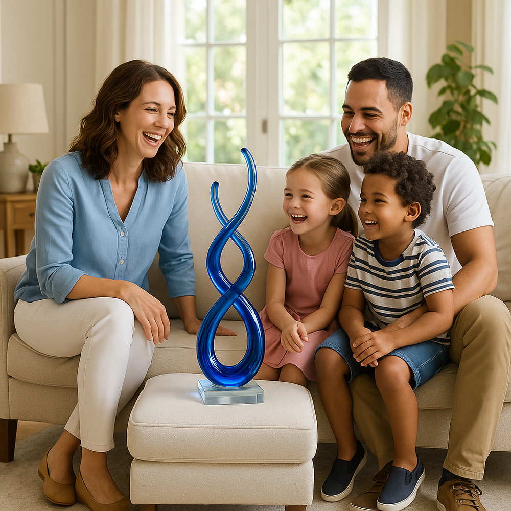 Transform your living space with this stunning 20" Clear and Blue Murano Glass Modern Abstract Tabletop Sculpture, an exquisite decorative accent that brings contemporary elegance and artistic sophistication to any environment. This expertly handcrafted sculpture is made from high-grade Murano style art glass in beautiful clear and blue hues that create a captivating visual display. The 20" Clear and Blue Murano Glass Modern Abstract Tabletop Sculpture represents the perfect fusion of traditional glassmaking techniques and modern abstract design, making it an ideal centerpiece for living rooms, dining areas, or office spaces. Crafted by skilled artisans using all-natural, environmentally sustainable materials, this piece ensures that no two sculptures are exactly alike, making each one truly unique. The contemporary styling and abstract form create visual interest while the translucent glass properties allow light to play beautifully through the piece, adding dimension and sparkle to your décor. Due to the genuine nature of the materials and expert craftsmanship, slight variations or bubbles may appear, adding to the authentic artisanal character.