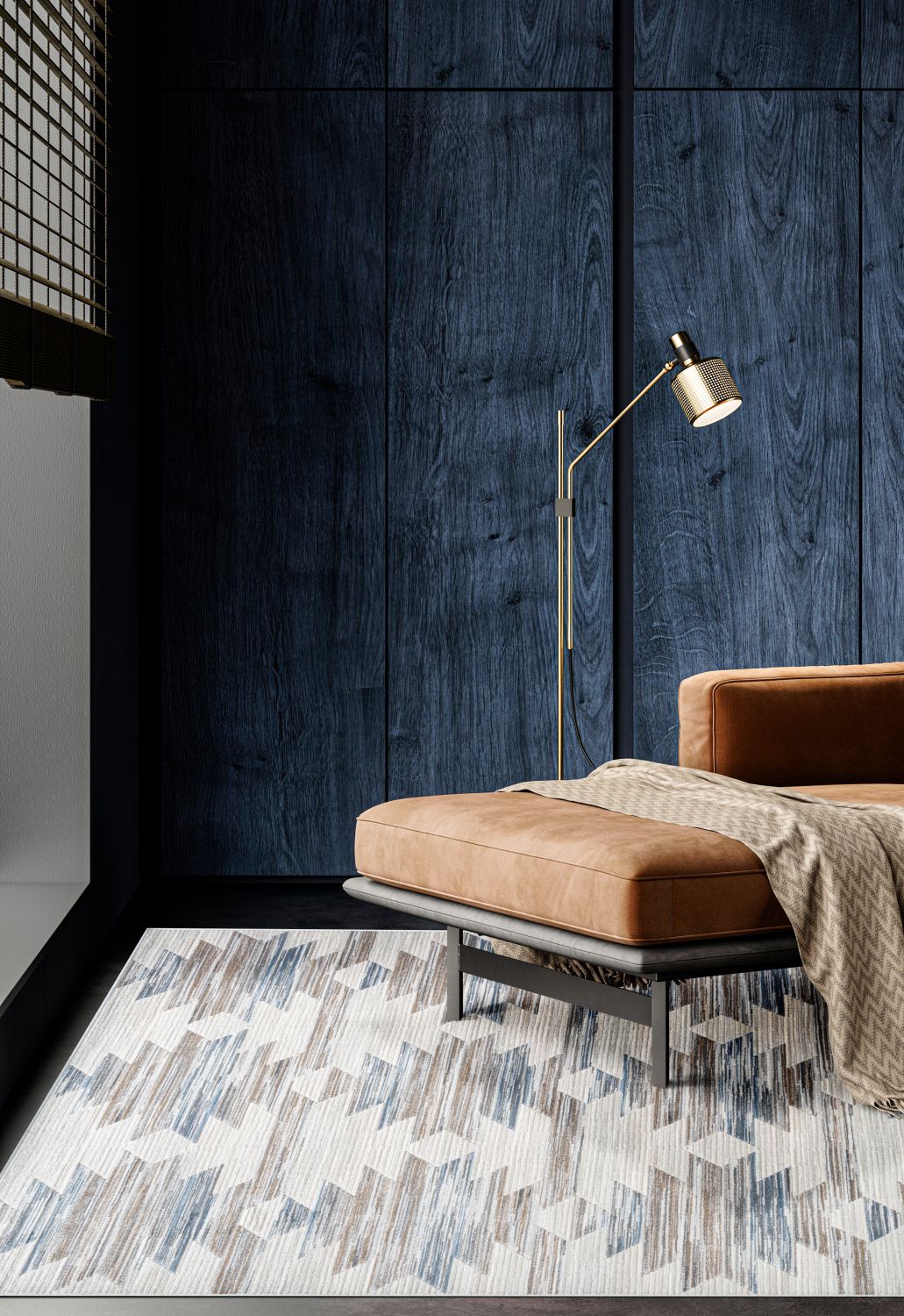Eno Gamela Viscose Area Rug – Blue, Brown, Ivory, Copper & Grey Accents for Highlights for Modern Interiors, Soft & Luxurious Feel Underfoot | Home Decor Rugs | Trufairs