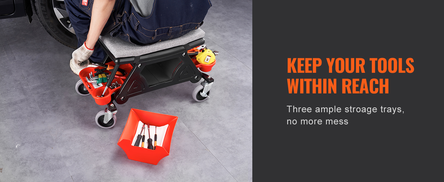 Ideal for Car Maintenance and More:The mechanics roller seat is the perfect companion for automotive work. Its compact, low-profile design allows easy access to tight spaces, making it ideal for tasks like car maintenance, tire changes, cleaning, and detailing. Enhance your work efficiency and comfort, whether you’re working on your car, bike, or other mechanical projects.