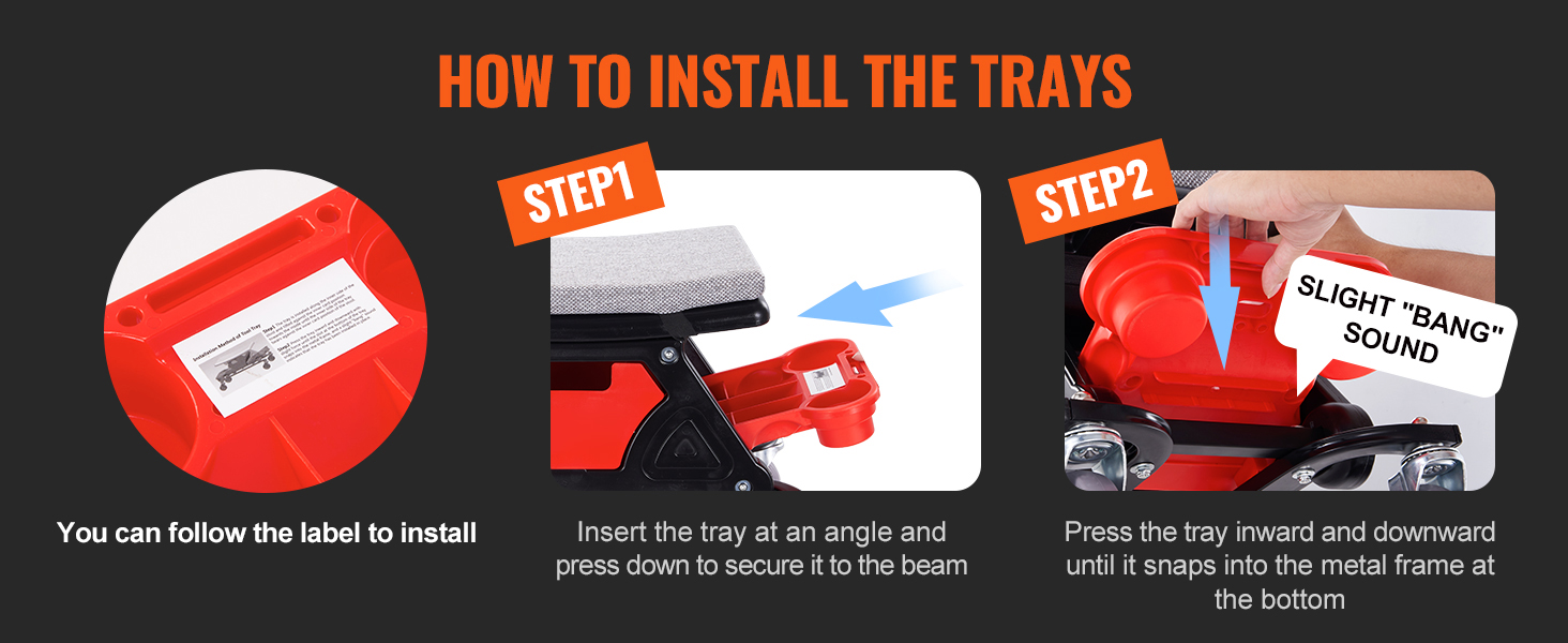 Simple Tray Installation:Installing the storage trays is quick and easy. Simply follow the labeled instructions, insert the tray at an angle, and press down until it locks securely into place on the metal frame. The process is designed for effortless setup, so you can get back to work in no time.