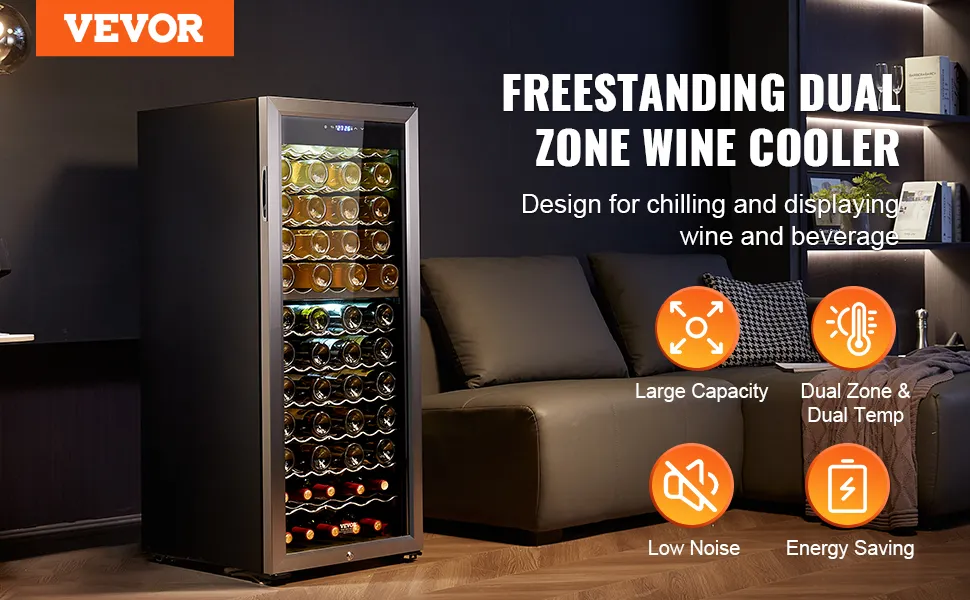 - 80-Bottle Capacity: The VEVOR freestanding wine cooler holds up to 80 bottles of 750ml wine. Whether you’re a wine enthusiast or collector, this cooler provides ample space to showcase and age your favorite wines.