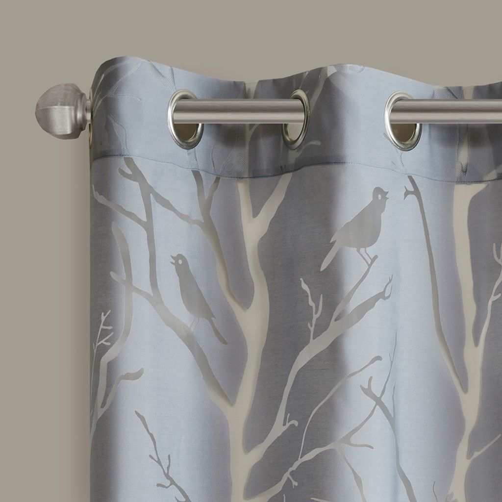 Grommet Top Sheer Bird on Branches Burnout Window Curtain(Only 1 Pc Panel)