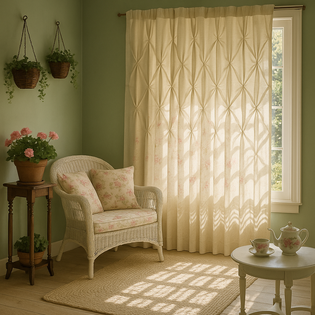 - - Style: Tufted semi-sheer with pin-tuck design elements