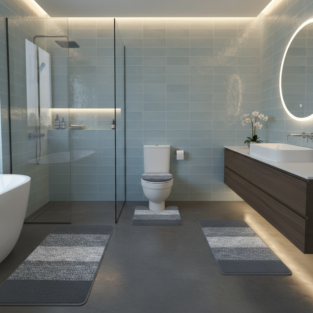Ultra Soft Comfort: Made of high-quality microfiber, this bathroom rug set is soft and comfortable, providing a cloud-like feel underfoot.Non-Slip Design: Features an upgraded non-slip TPR backing for a firm grip and increased ground friction, ensuring safety and durability.Highly Absorbent: The thick, soft bath mat quickly absorbs excess moisture, keeping your feet dry and protecting your floor from damage.Machine Washable: Designed with microfiber locking technology, this rug set withstands frequent machine washes without fading, lint, or warping.Versatile Use: Suitable for use in the bathroom, bedroom, living room, sink, and bathtub, with various colors to match different decors.Perfect Dimensions: The four-piece set includes sizes 18"x26", 18"x48", U20"x23", and Cover19"x21", ideal for comprehensive bathroom coverage.