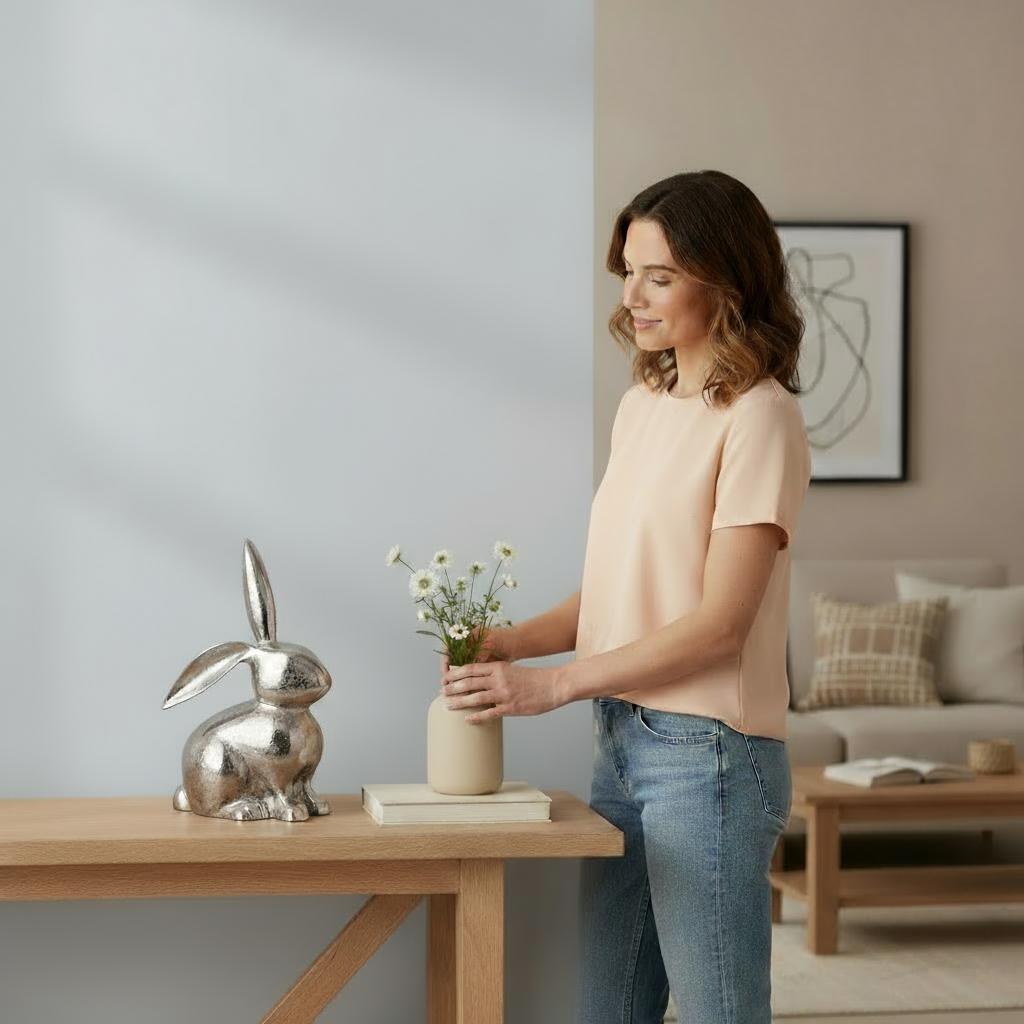 • Add a touch of nature and the outdoors to your space with this cute sitting bunny rabbit.