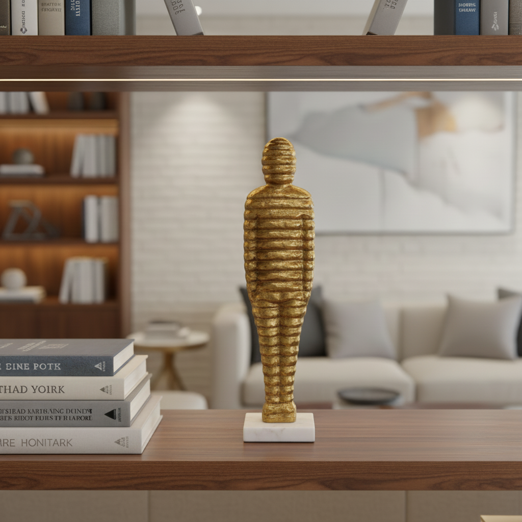 21 Inch Gold and White Aluminum and Marble Mummy Tabletop Sculpture – Modern Artistic Decor | Trufairs