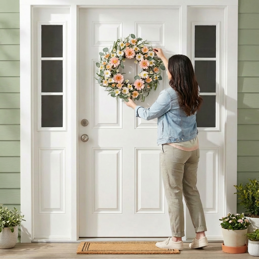 Buy Spring Daisy Maple Wreath – Vibrant Bloom Accent to transform your living room or entryway with fresh, welcoming charm. The Spring Daisy Maple Wreath features delicate pink and white daisies paired with lifelike green maple leaves for a light, cheerful look. Its timeless circular design and natural grapevine base add rustic character and depth, making it the perfect touch for spring and year-round style. Display Spring Daisy Maple Wreath on your mantle, front door, or wall to greet guests with seasonally inspired elegance. With reliable quality from Trufairs and rapid shipping, every order ensures a hassle-free home upgrade. Choose Spring Daisy Maple Wreath to elevate your decor with bright floral beauty and trusted value.