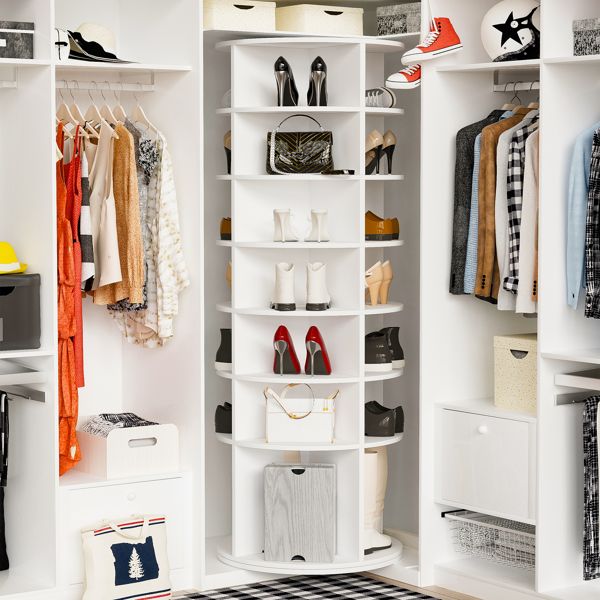 ORGANIZED AND BEAUTIFUL - Make your shoes neat and organized with this rotating shoe rack tower lazy susan; The space saving design can hold up many shoes or bags in a compact space; SIZE: 23.7"W x 23.7"D x 72.5"H.