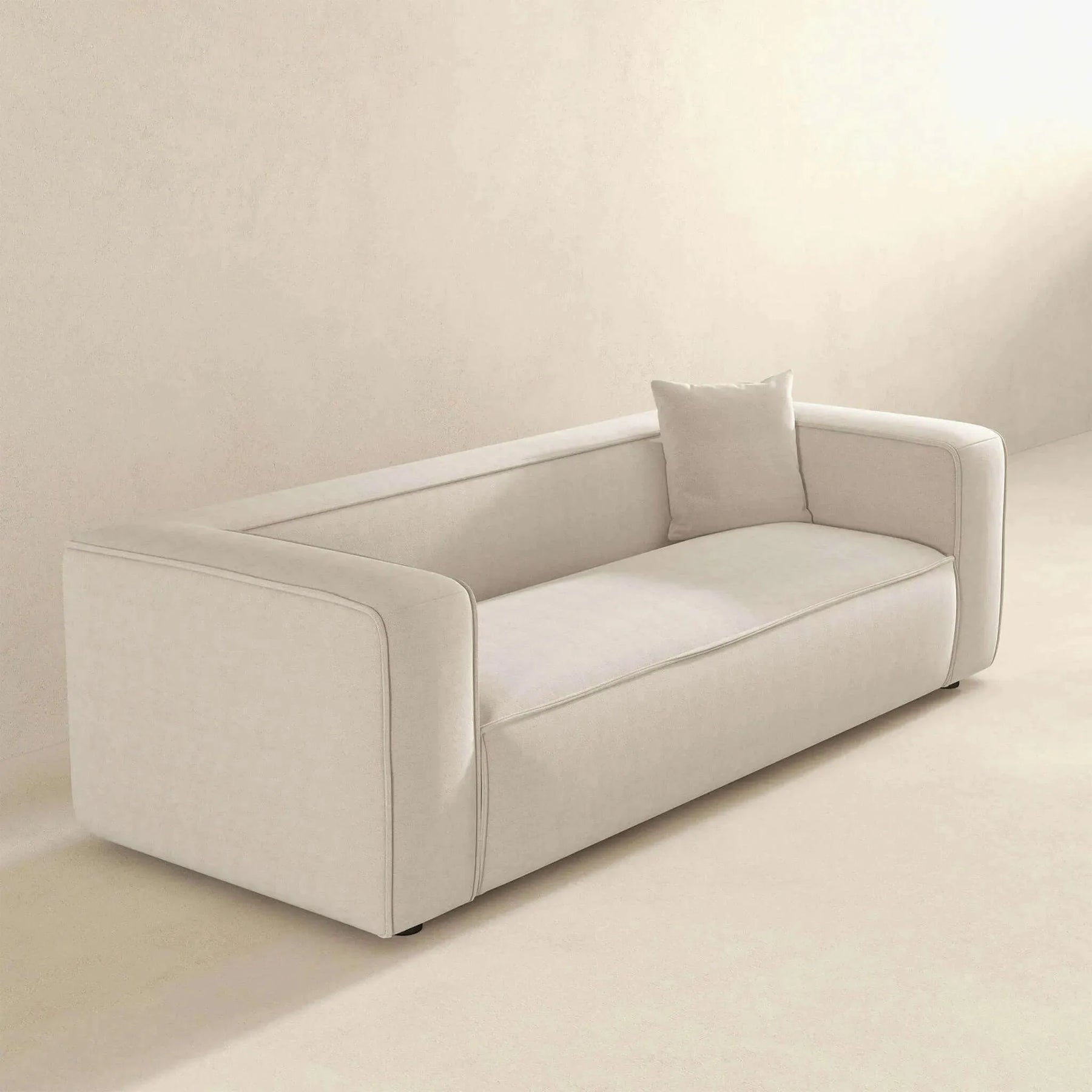 The Marshall Cream Boucle Sofa is not just a piece of furniture — it's a decor element that will turn your home into a sanctuary of style and sophistication. The boucle upholstery is as durable as it is decadent, keeping the sofa looking good (and functional) for years to come. The cream finish lightens up any room, bounces light for an airy, spacious feel, and its sleek silhouette and clean lines definitely make it a show-stopper in modern interiors. Mix it with colorful accent pillows for a pop of color or keep it minimal for subtle luxe — the world is your oyster. Beautiful and practical, this is a perfect blend of form and function. Whether you’re cuddled up with a good book, a movie night or hosting guests, the Marshall Cream Boucle Sofa provides impeccable comfort and enhances style in your home.