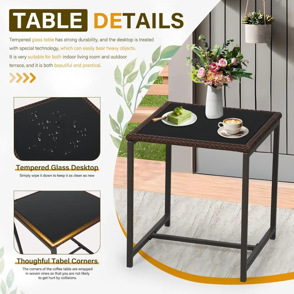 - ELEGANT GLASS TABLE TOP - Bistro set features and elegant glass top side table perfect for a couple glasses of wine or the morning coffee and newspaper.