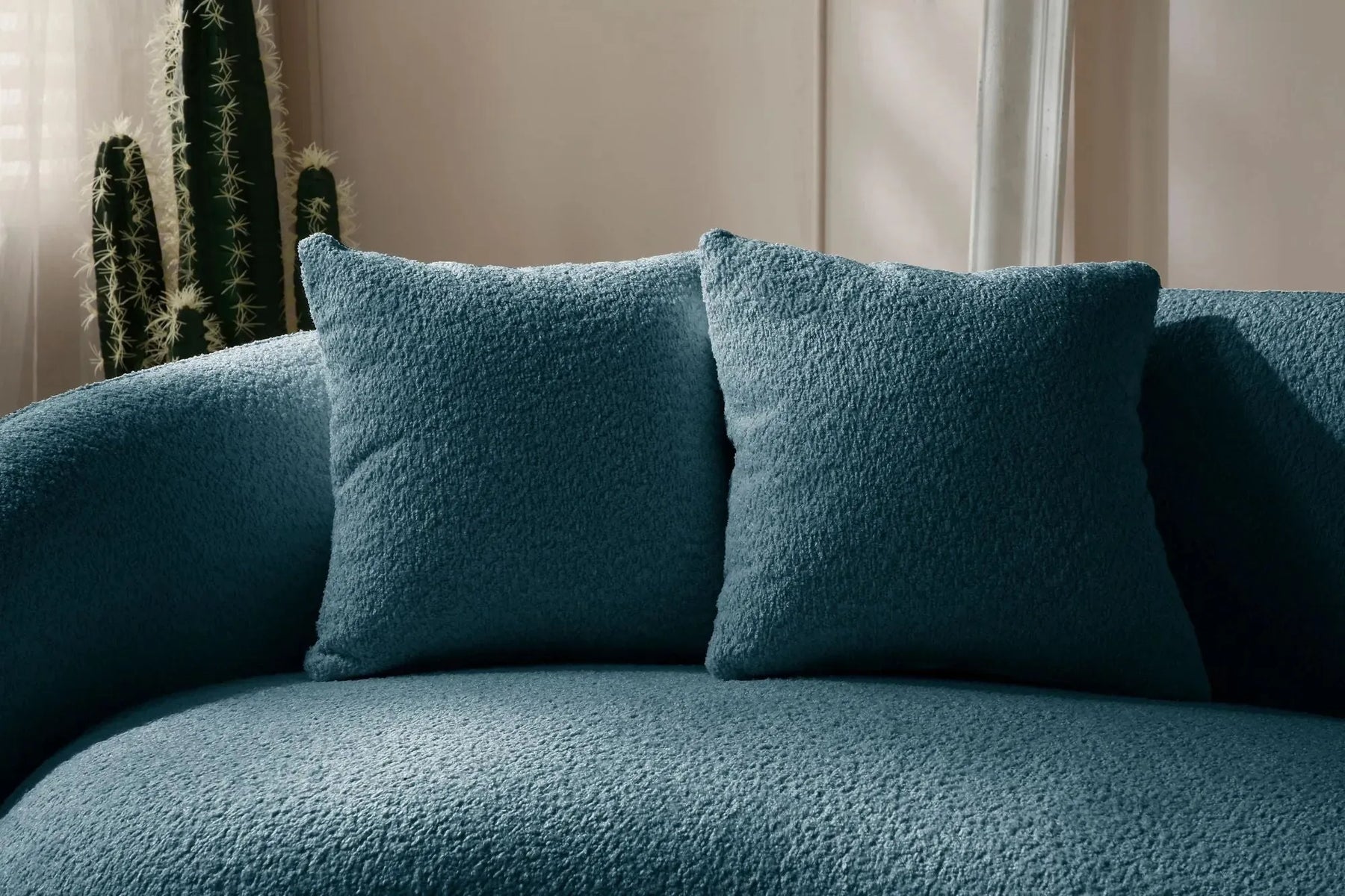 5-Seater Blue Boucle Curved Sectional Sofa - Half Moon Modern Living Room Couch with 4 Throw Pillows