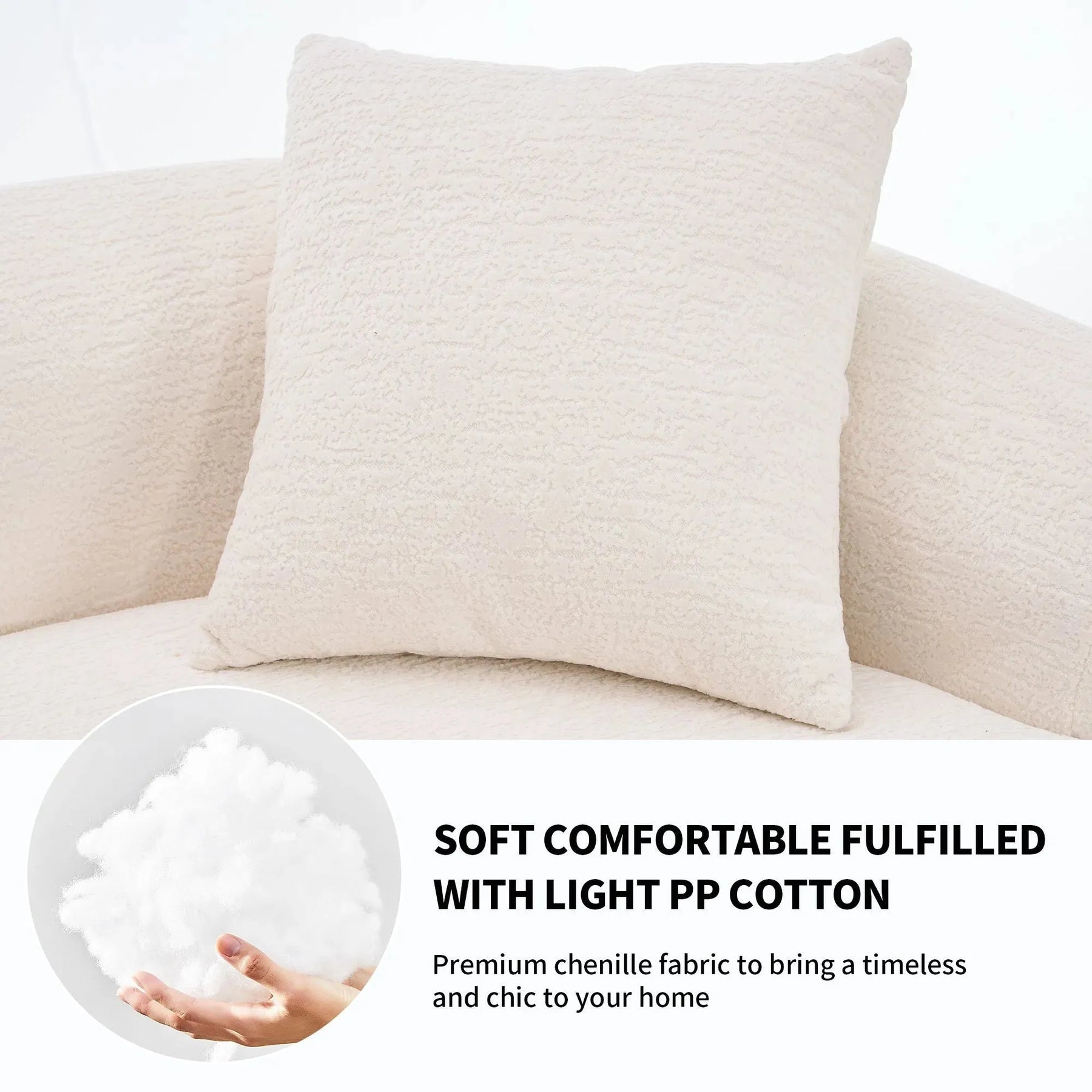 4 Seater White Sofa with Chenille fabric, 30D ,60 Hardness full sponge,4 pillow for Living Room, Home Furniture Sleeper Sectional Sofa for Apartment