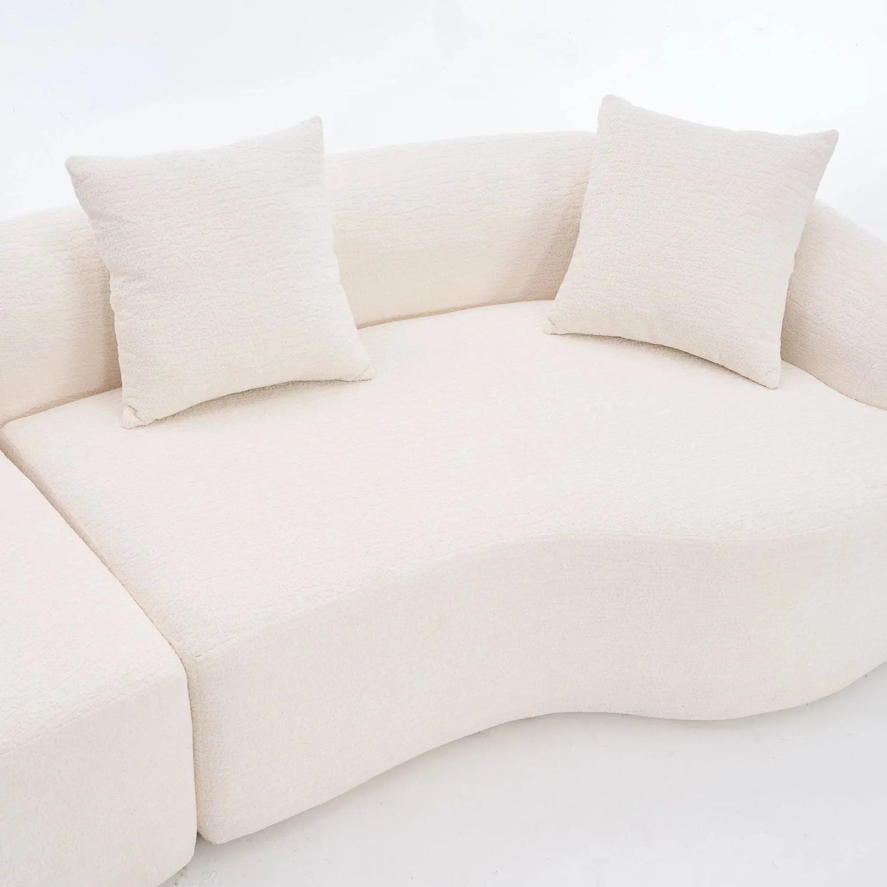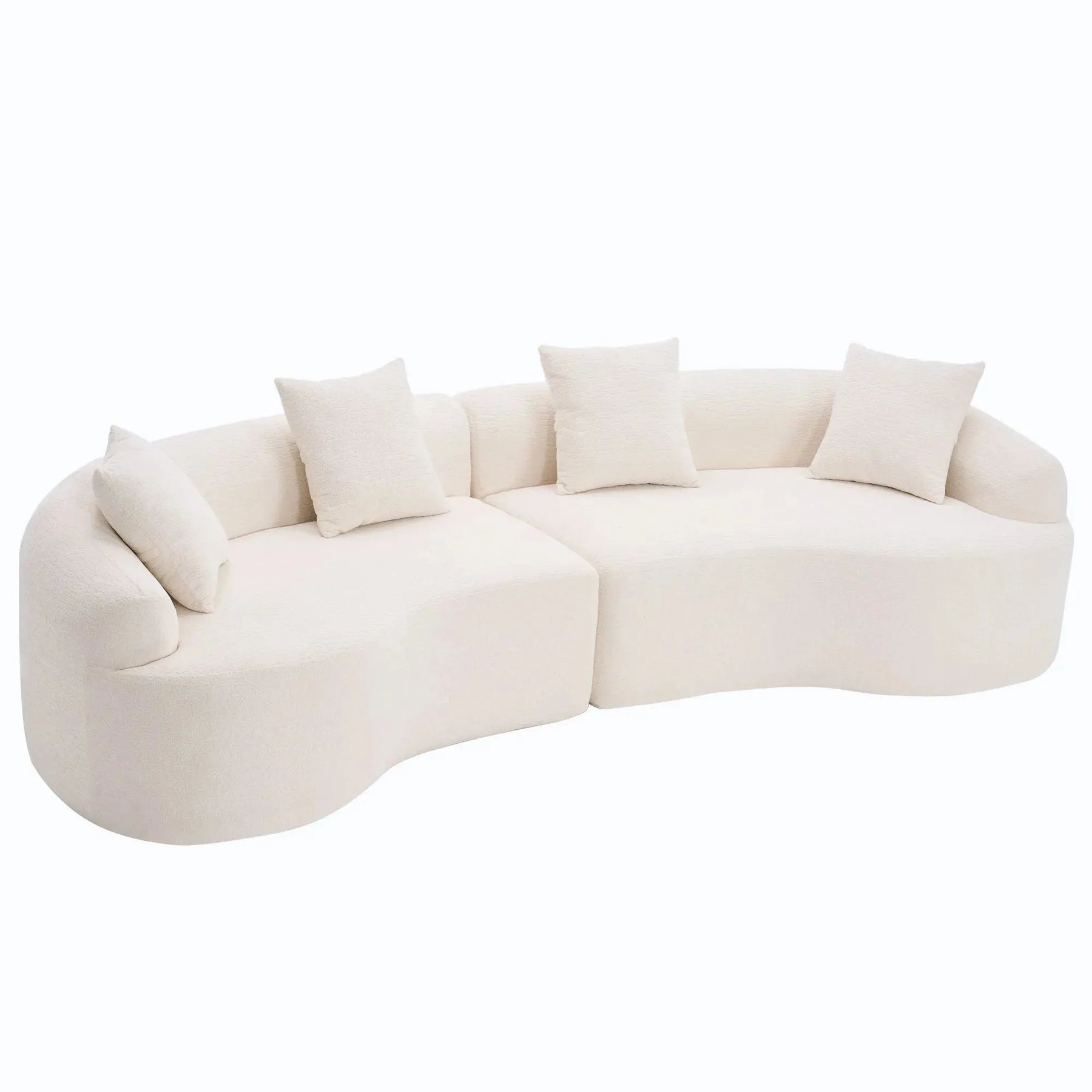 Luxurious Design: The 110'' Sofa combines a luxurious and lavish design with its curved shape and polyster fabric upholstery. Its oversized proportions make it a statement piece in any living room, exuding an air of elegance and sophistication.