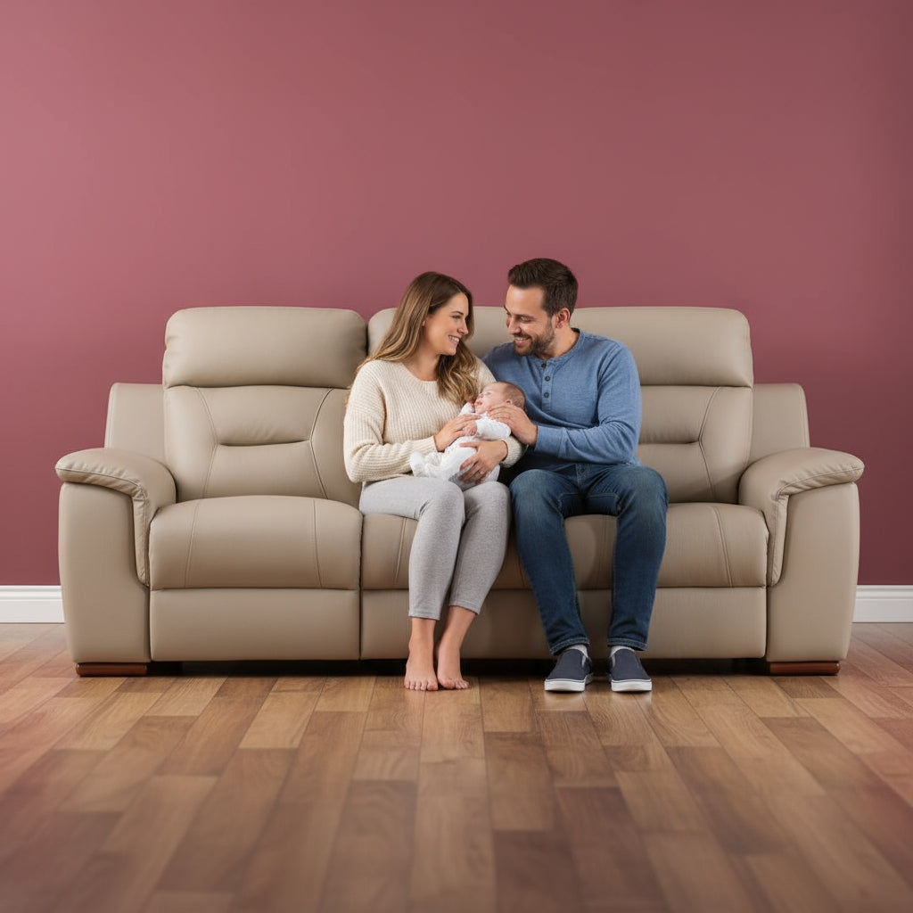 90-Inch Beige Faux Leather Manual Reclining Sofa - 3-Seater with 750lb Capacity & Brown Steel Legs