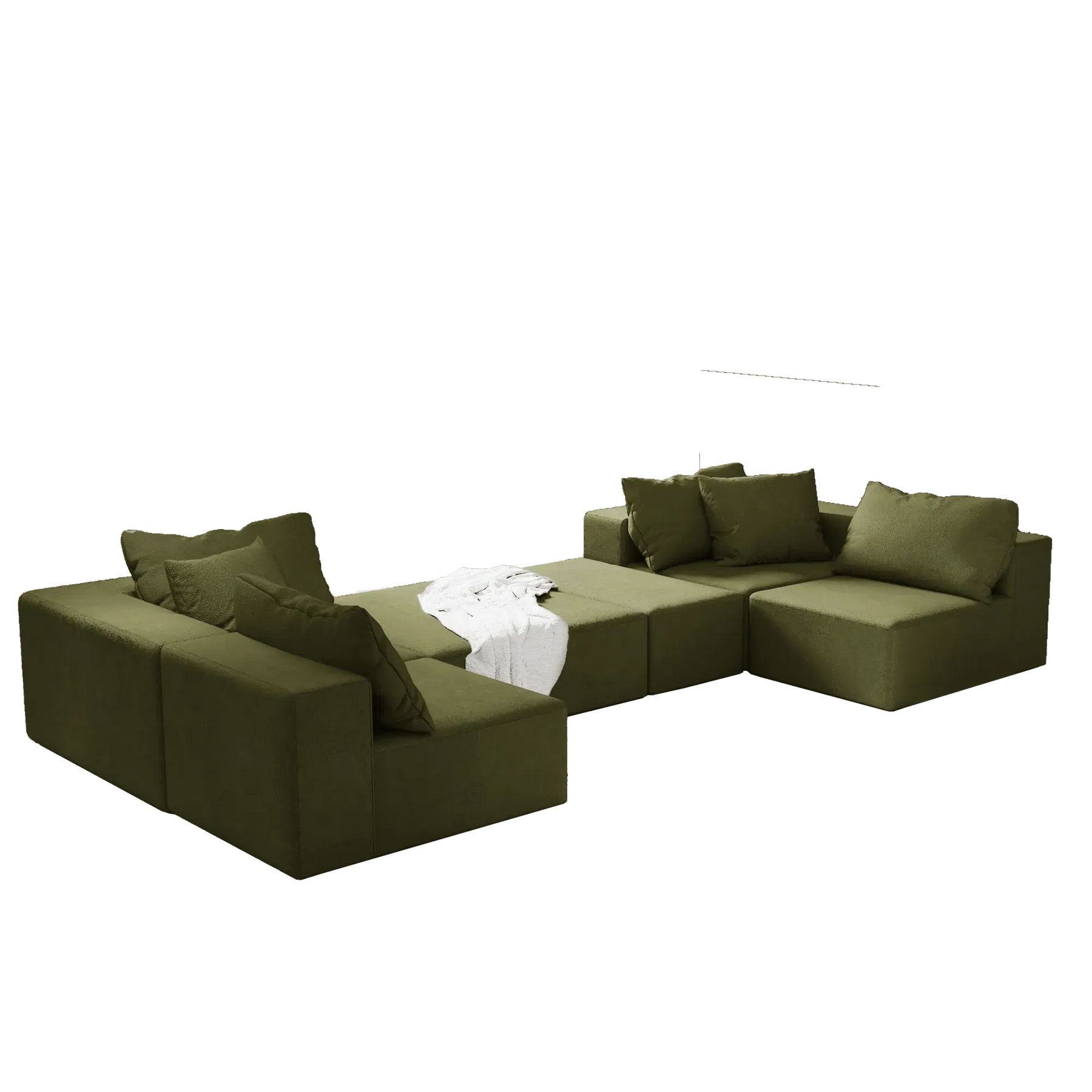 This sectional sofa is everything I hoped for and more! The modular design lets me rearrange the pieces easily, and the upholstery is soft yet durable. The 6 pillows add extra coziness.