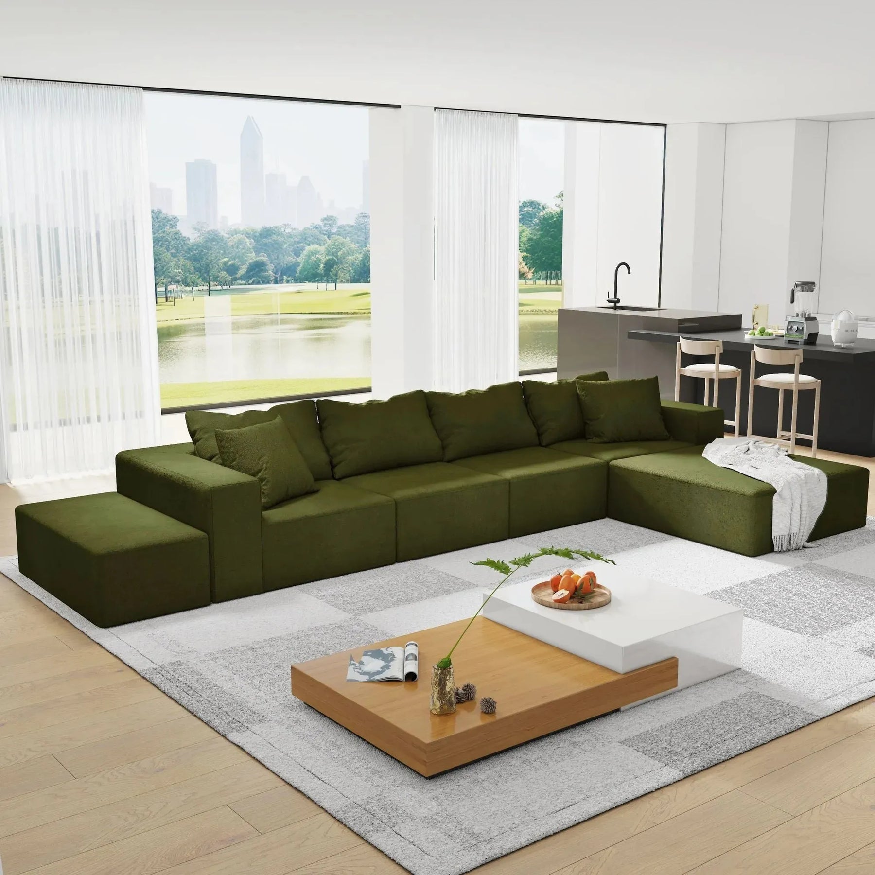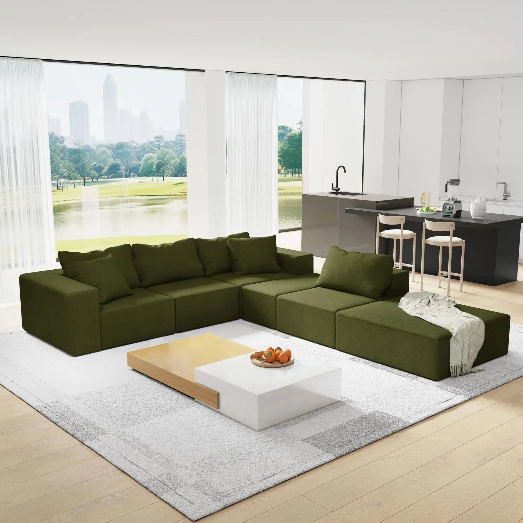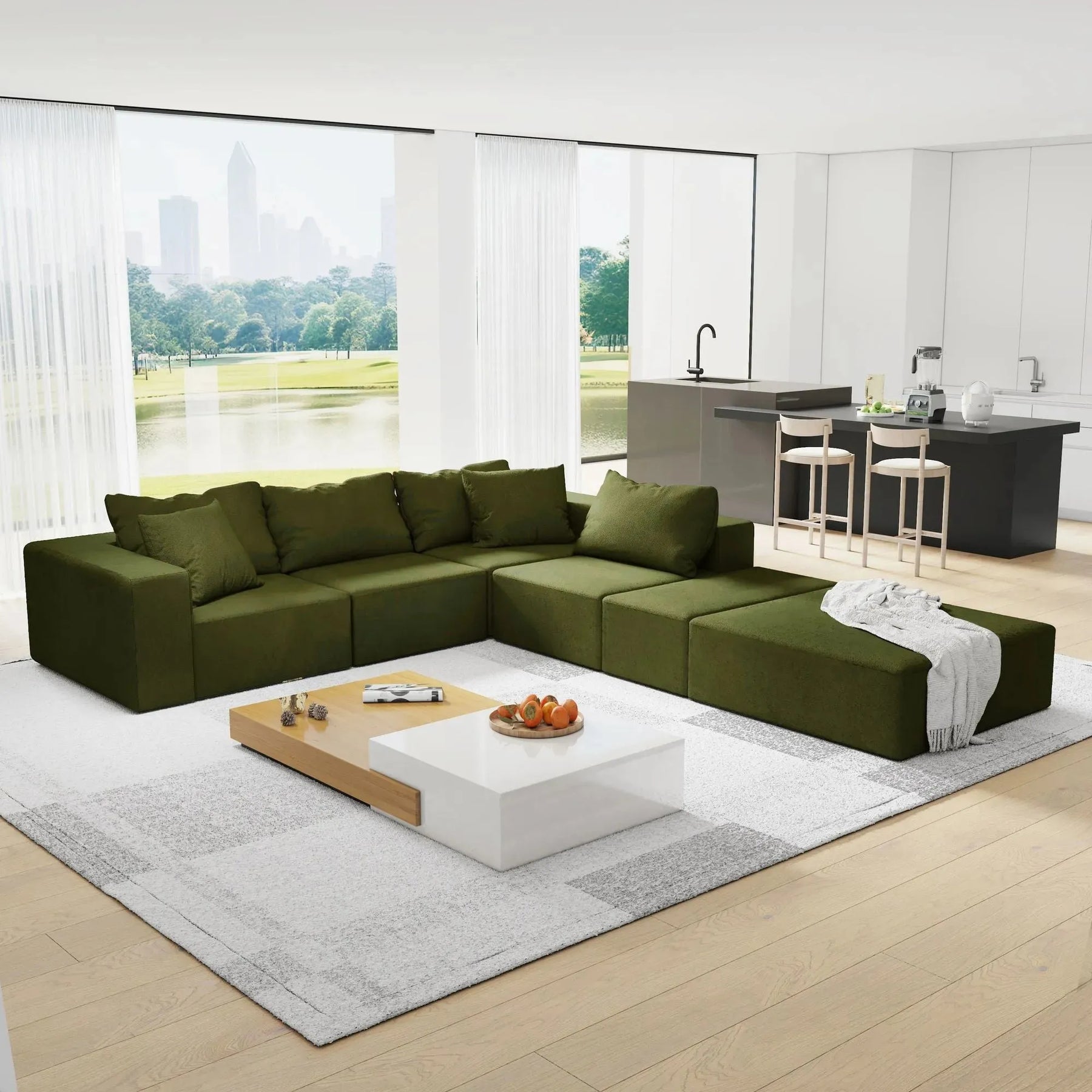 Modern Upholstered Sectional Sofa Couch Set,Modular 132" L Shaped Sectional Living Room Sofa Set With 6 Pillows,Free Combination Sofa Couch for Living Room,Bedroom