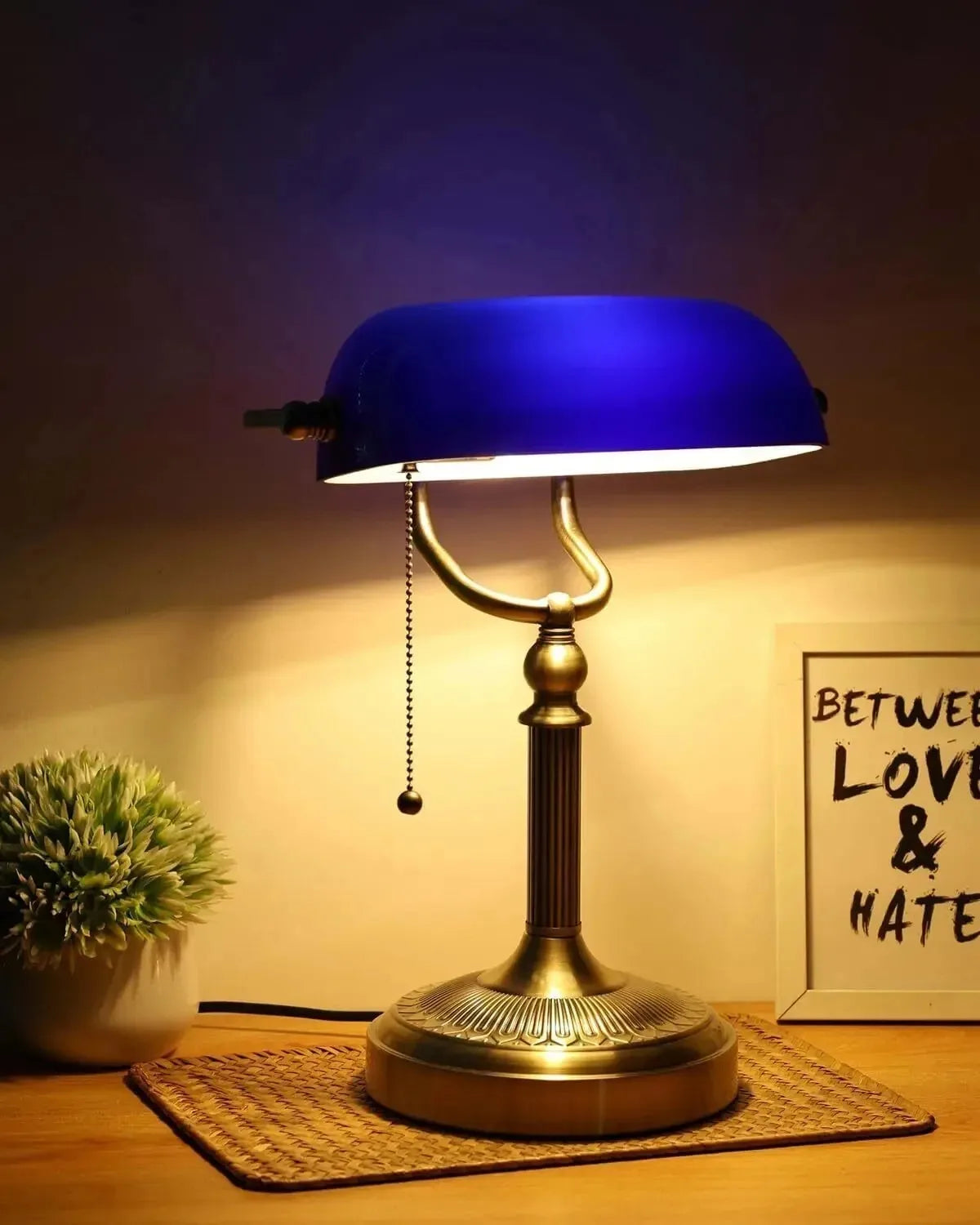 New plug-in table lamp Blue glass banker lamp with China switch E27/E26 living room bedroom bedside sofa library table lamp