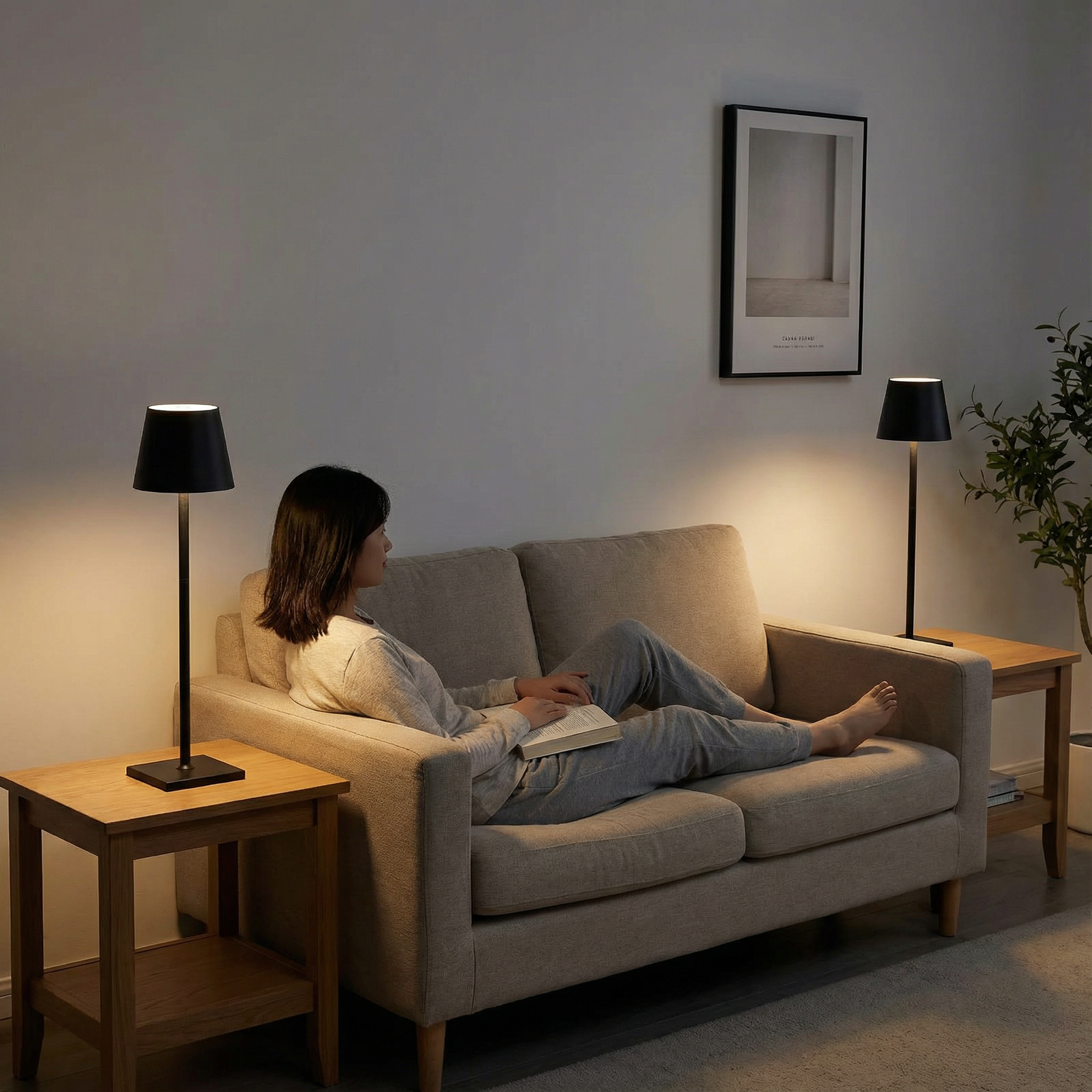 · Elegant & Durable: The rechargeable table lamp's pole and base are made from high-quality aluminum, ensuring it's lightweight yet durable. The metal finish enhances rust-proof and scratch-proof durability, keeping it looking great over time