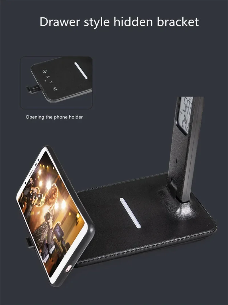 Wireless Charger Pad USB Fast Charging Station LED Desk Lamp Temperature Alarm Clock Eye Protect Study Business Light Table Lamp