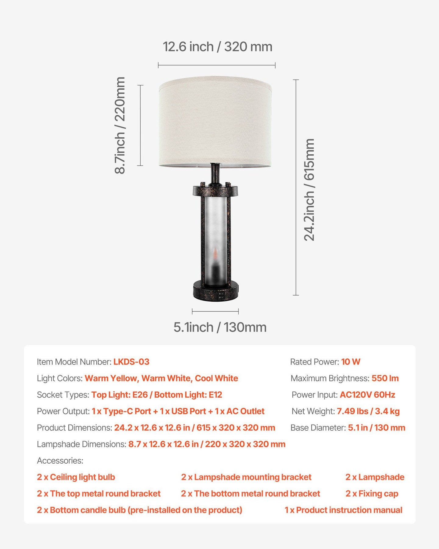 4.Easy Installation: All accessories are included, and the farmhouse lamp's well-designed structure requires no complicated tools or steps. You can complete the installation quickly and effortlessly, enjoying comfortable lighting in no time