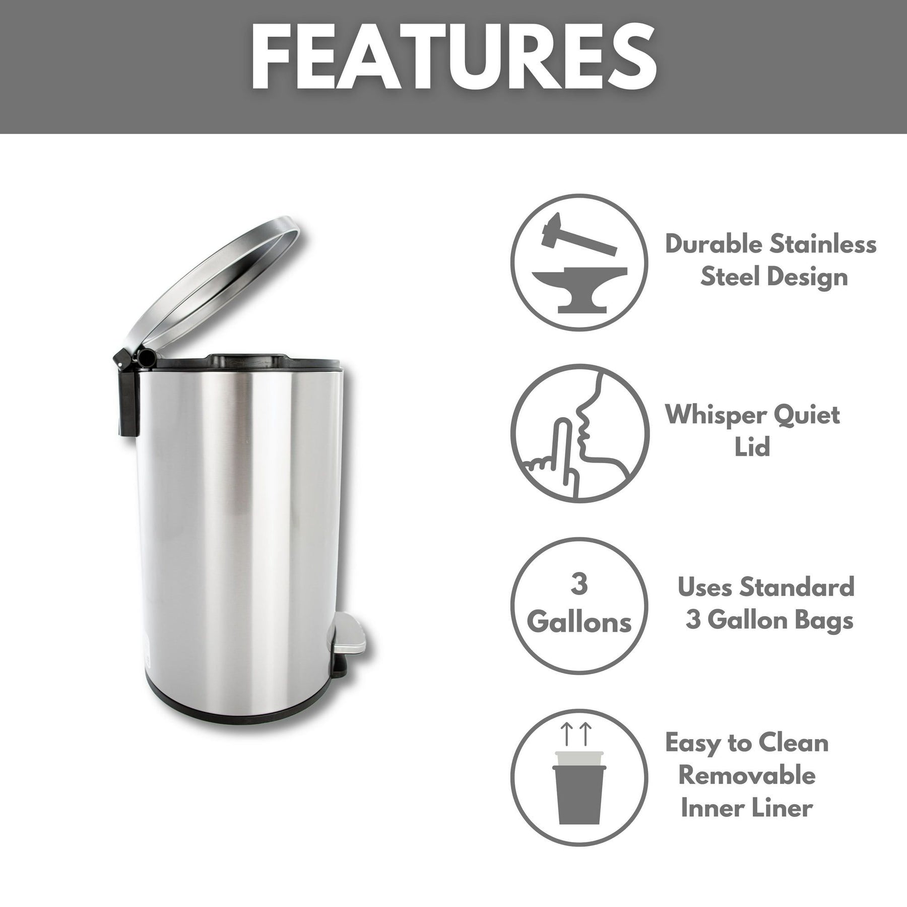 Bathroom Trash Can – 3.1 Gallon Modern Silver Stainless Steel Step-On Bin, hygiene, space-saving, and modern | Small Garbage Can for Bathroom | Trufairs