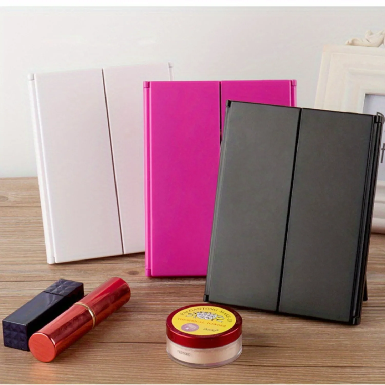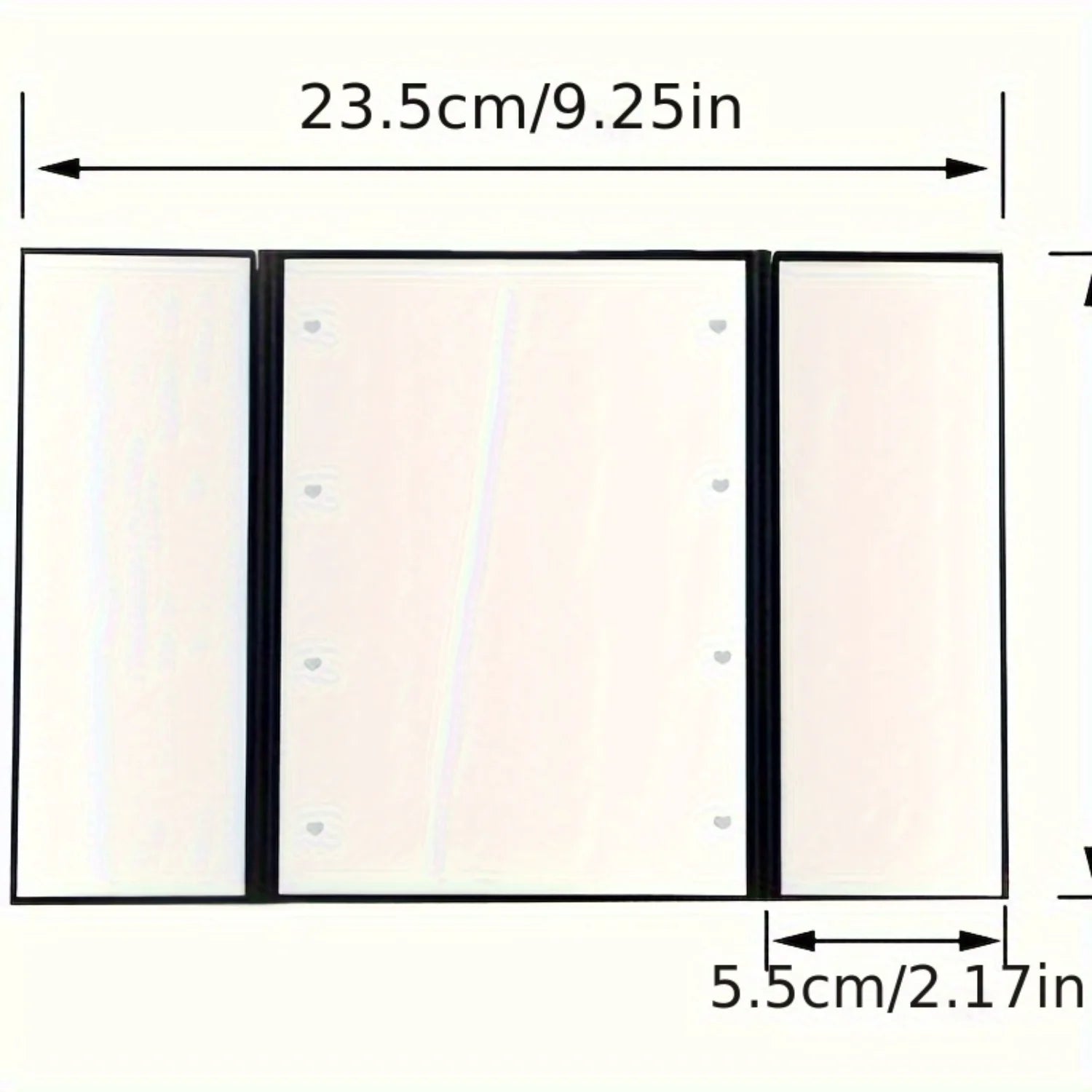 3. Say goodbye to bad lighting with our Tri-Fold Vanity Makeup Mirror! With its foldable design and adjustable brightness, this mirror is a must-have for any makeup lover. Powered by dry batteries, it's perfect for on-the-go touch-ups.