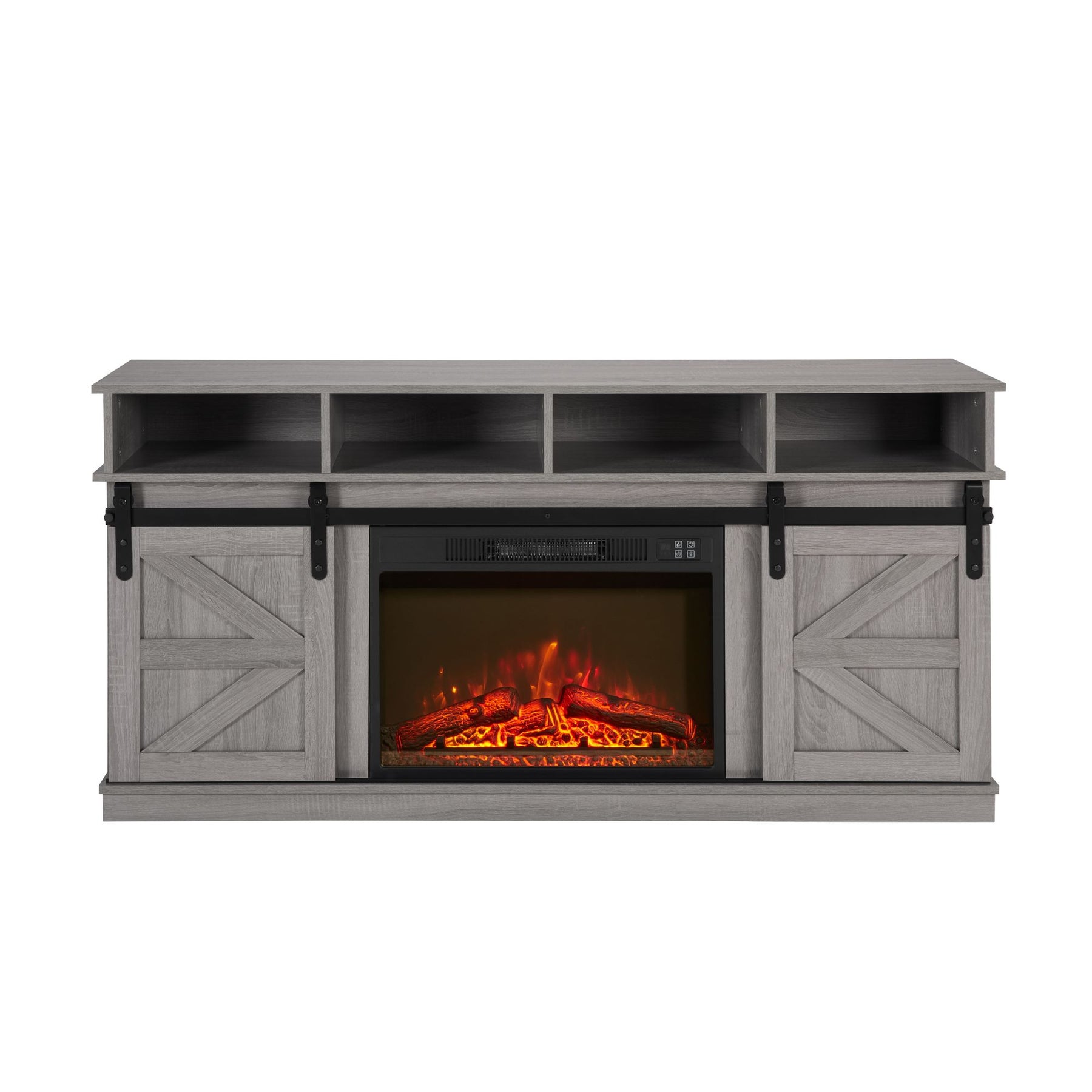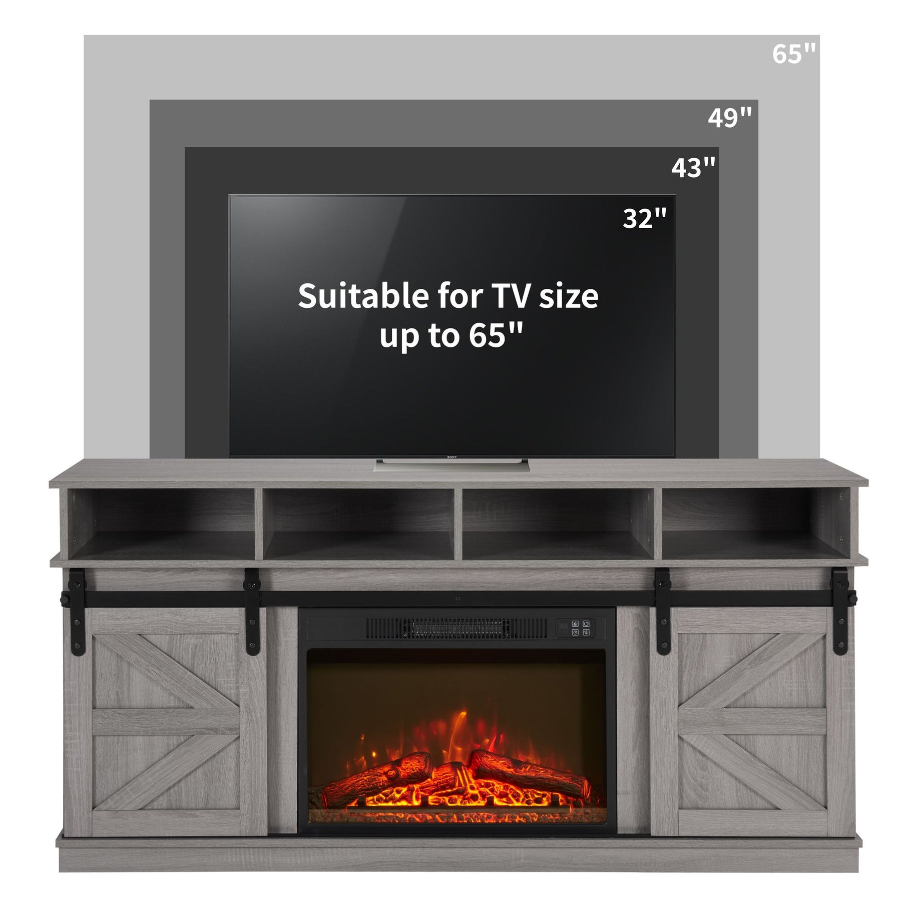 Farmhouse Grey Fireplace TV Console – Rustic Storage & Cozy Ambiance | Entertainment Furniture | Trufairs