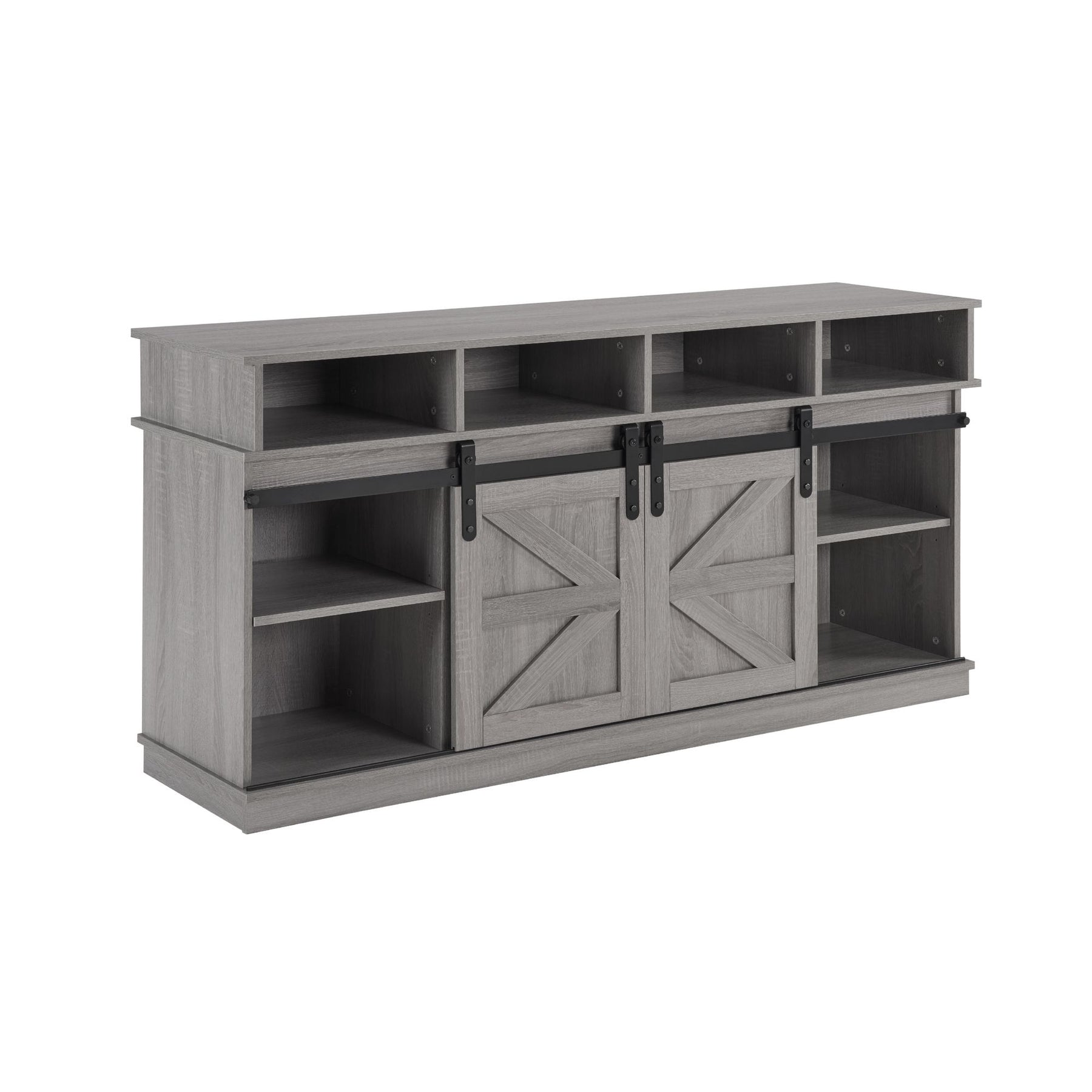 - Barn-inspired modern farmhouse design in stylish grey finish