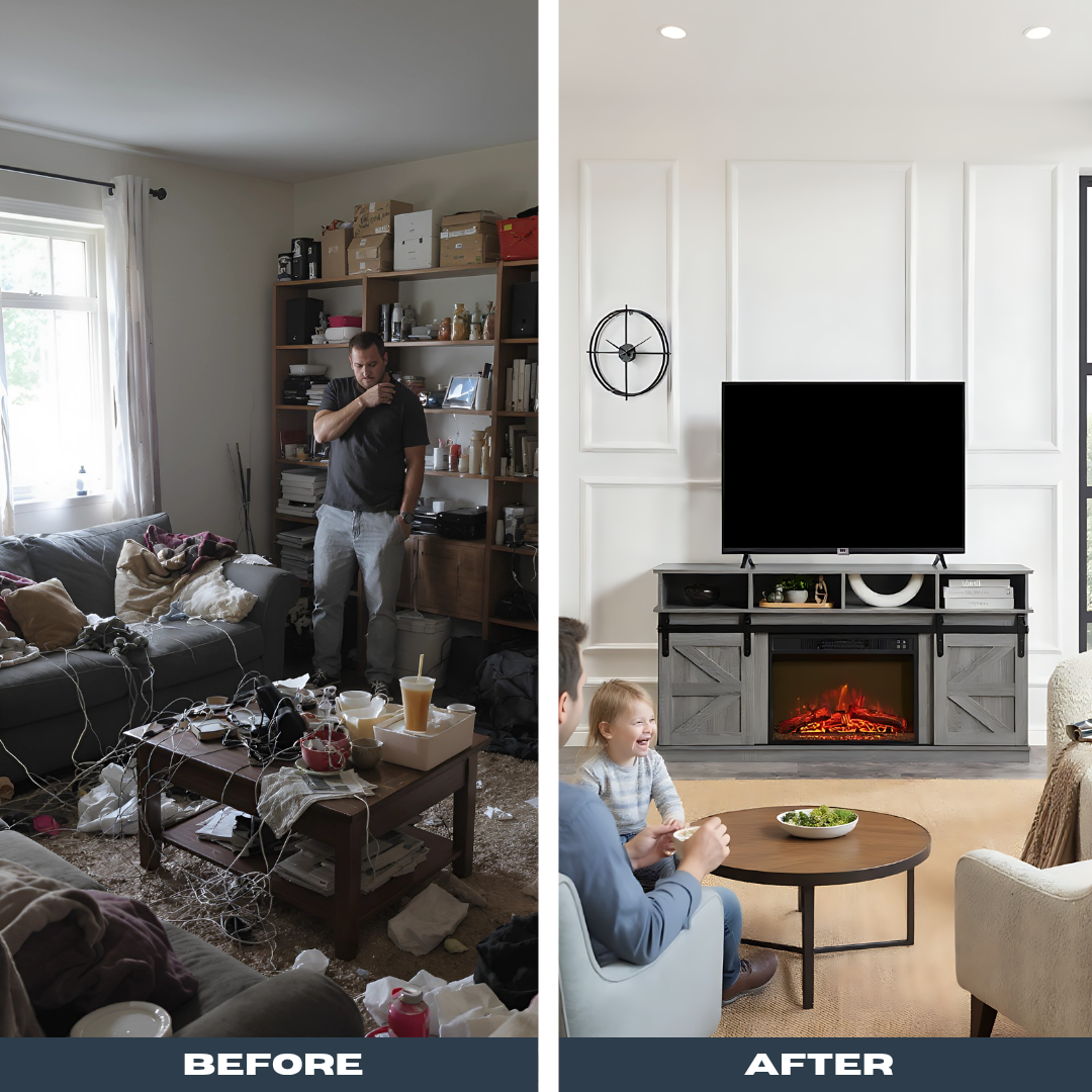 Add timeless style and functional versatility to your home with the Farmhouse Grey Fireplace TV Console – Rustic Storage & Cozy Ambiance. Designed to blend modern farmhouse charm with practical storage, this console features a barn-inspired silhouette in a chic grey finish, providing the perfect stage for your entertainment needs. The Farmhouse Grey Fireplace TV Console – Rustic Storage & Cozy Ambiance supports TVs up to 65", combining open shelves for devices and décor with closed cabinets that keep clutter tucked away. The centerpiece is a 23" electric fireplace insert, creating cozy warmth and inviting atmosphere during movie nights and gatherings. With Trufairs, you enjoy high-quality design, fast delivery, and customer-focused service for reliable, hassle-free furnishing.