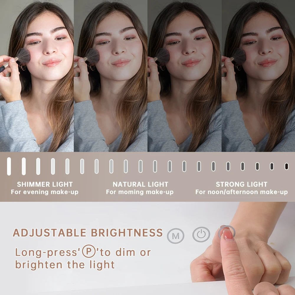 Our professional makeup vanity mirror with lights comes with a stable base. The large vanity light up mirror also has 2 back holes for wall mounting in bedroom and bathroom. Conveniently put it in your dressing table or hanging it on the wall