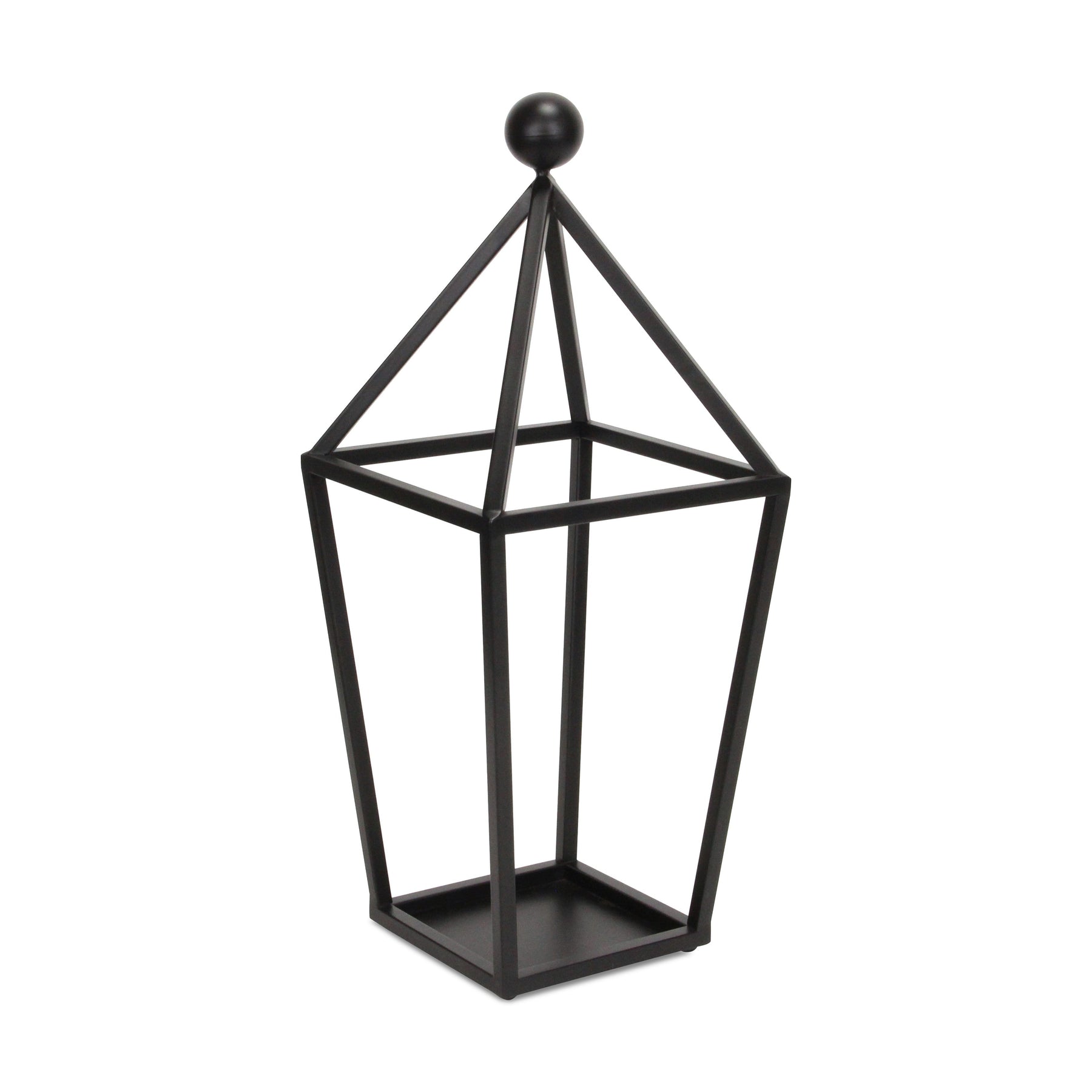 This 24-inch black geometric metal tabletop lantern candle holder is perfect whether you’re creating a beautiful tablescape centerpiece or looking to illuminate a space. Handmade by skilled craftsmen and designed to add a glamorous glow to any event or table setting. Add an extra pop of personality to every corner of your home with this gorgeous metal pyramid candleholder or sculpture that looks like a house. 24.00-inch h x 10.00-inch w x 10.00-inch d.