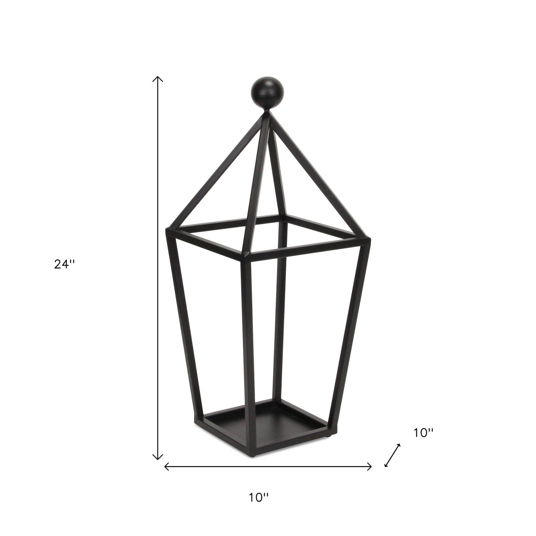 24" Black Geometric Metal Tabletop Lantern Candle Holder
