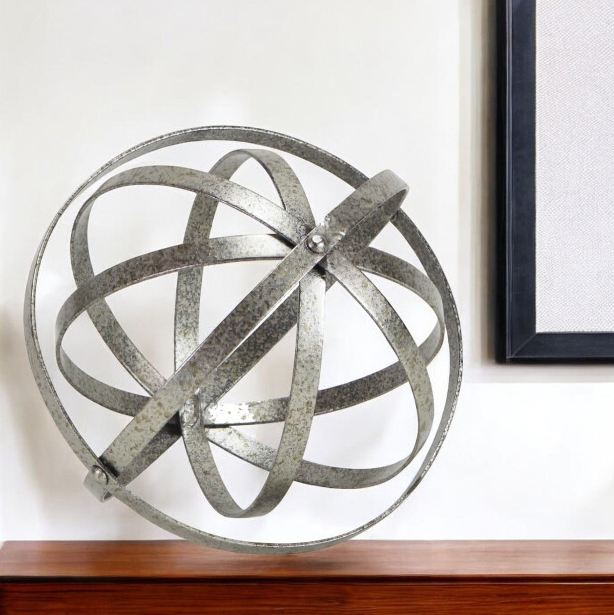 Keywords gray metal orb decorative sculpture, metal orb decorative sculpture, speckled gray metal orb decorative, gray metal orb decorative, orb decorative sculpture