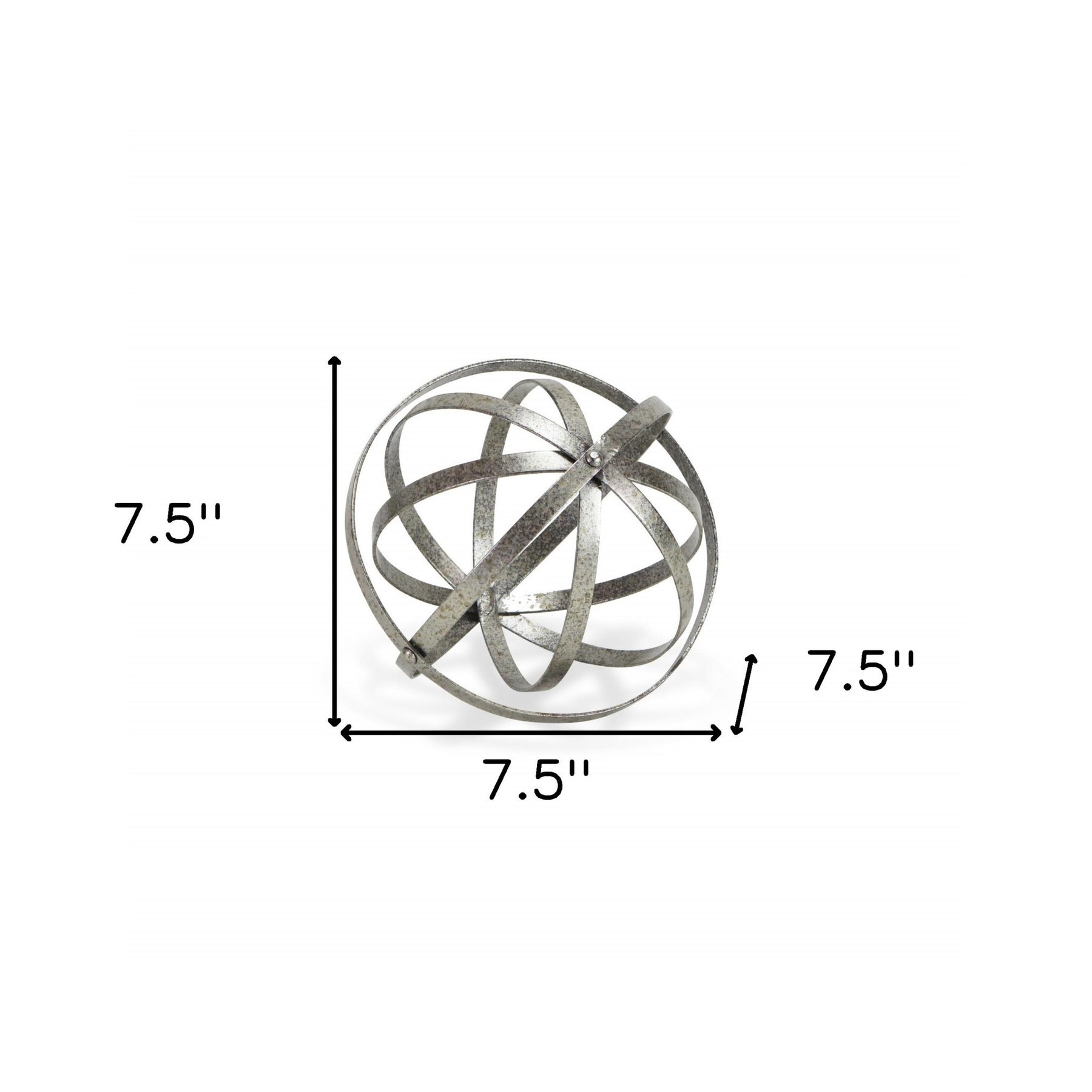 Add a touch of contemporary design to any space in your home with this Speckled Gray Metal Orb decorative tabletop sculpture. This handcrafted piece is made from metal and has distressed gray/silver color. The orb shape features an outer circle inside of which there are oval shapes that intersect and create an open geometric shape. 7.5-inch H x 7.5-inch W x 7.5-inch D