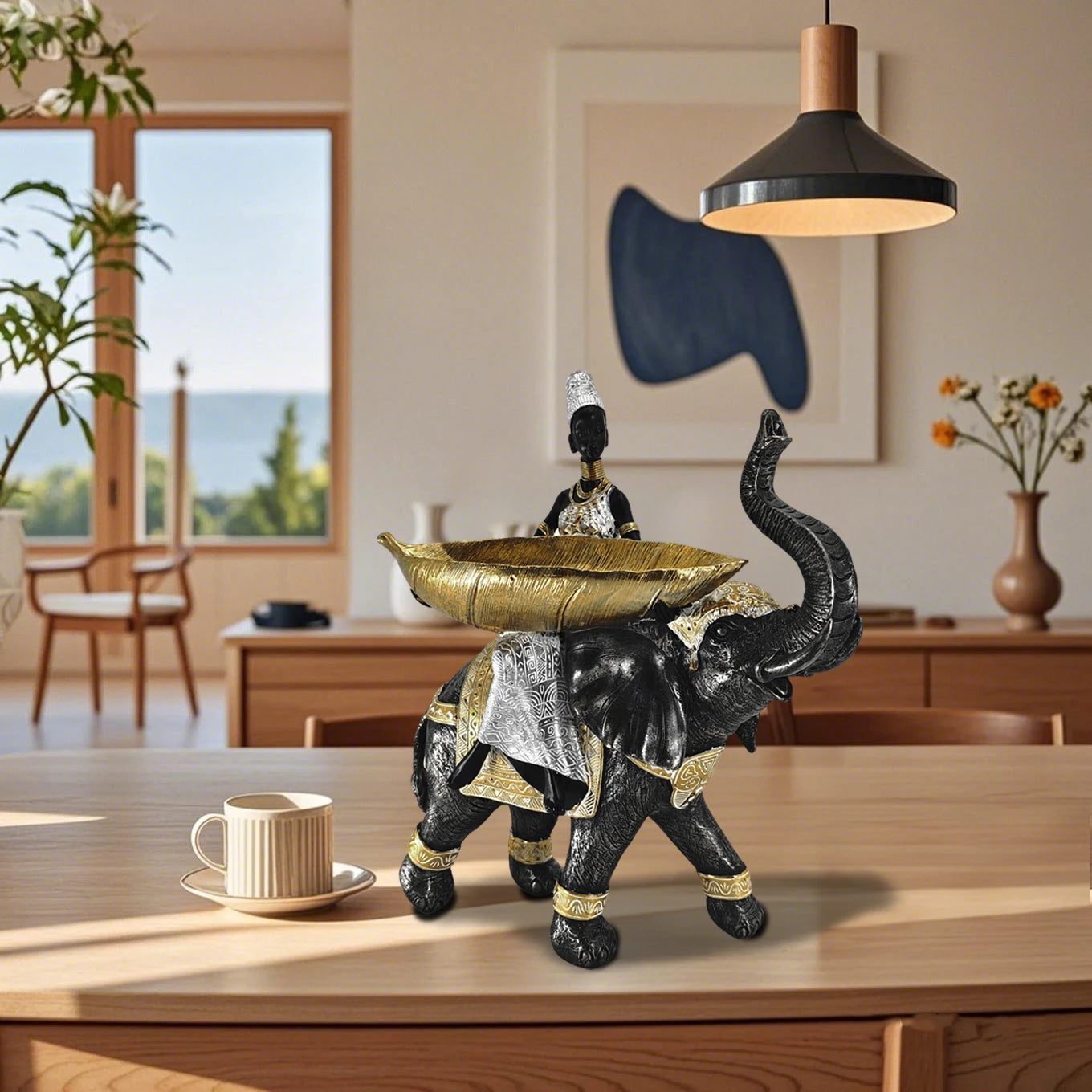 Elephant Statues Tray-14.5" Animal African Lady Tribal Sculpture Set,Silver Figure Figurines with Tribal Totem Design Home Decor