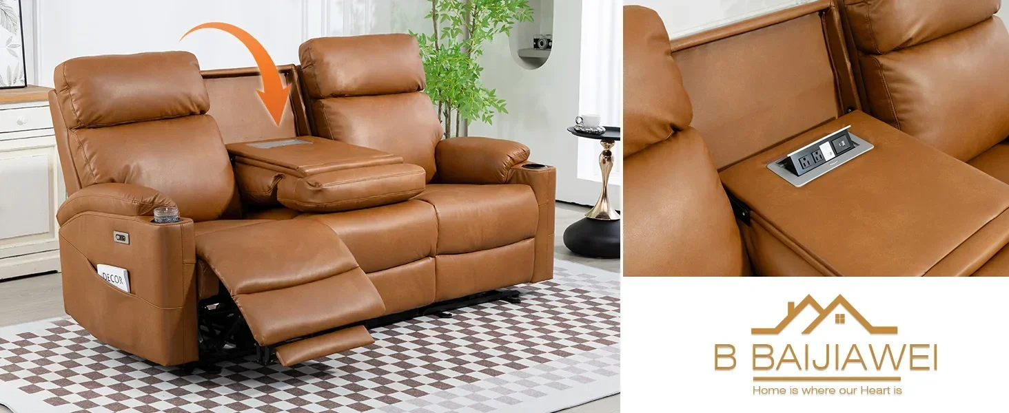 RPD4-3 seater recliner. PU leather recliner sofa. Home Theater Seating with flipped middle backrest. R