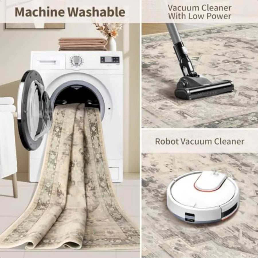 5X7 Washable Area Rug for Living Room Large Boho Rugs for Office Dining Room Room Farmhouse Durable Low Pile Non Slip Carpet f