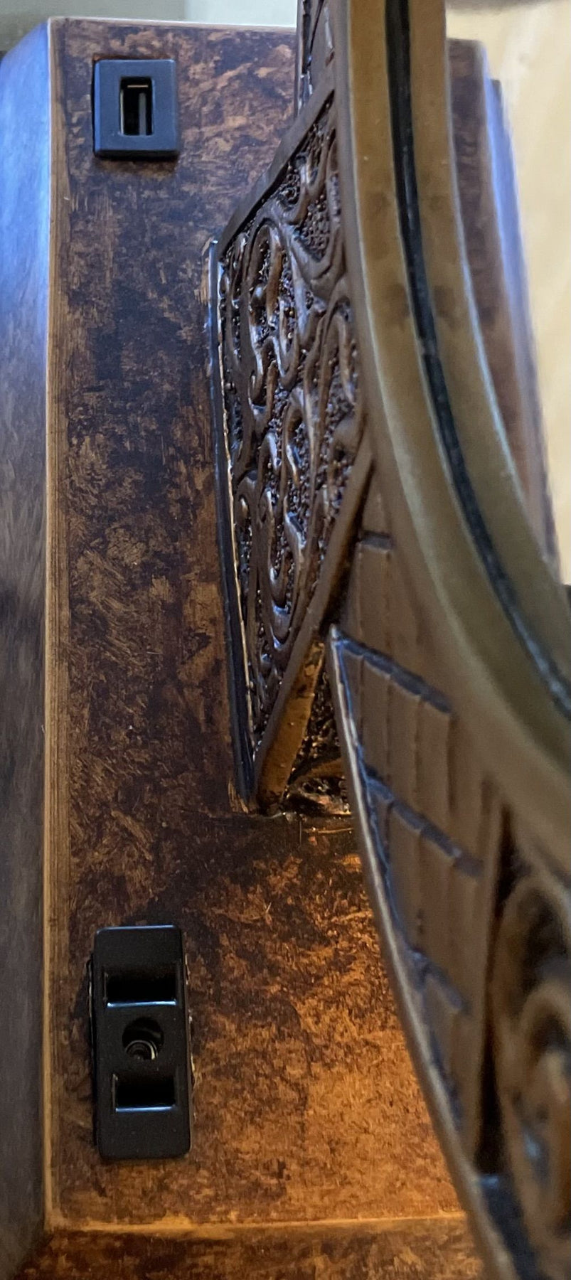 built-in Electric outlet and USB port on the base, allowing you to conveniently charge your devices while keeping them within reach.