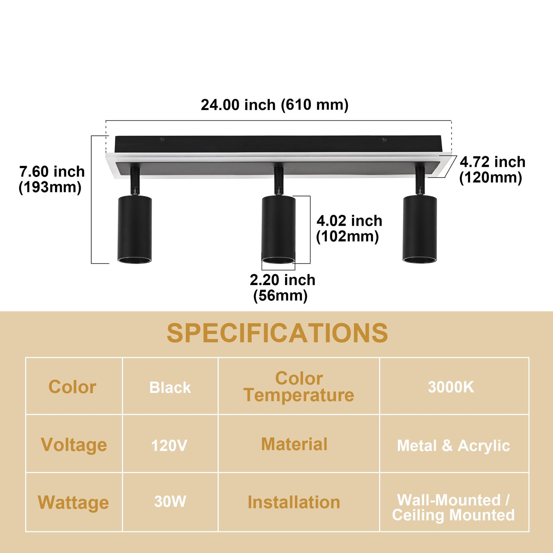 - Three separate adjustable spotlight heads ensure directional lighting in any room