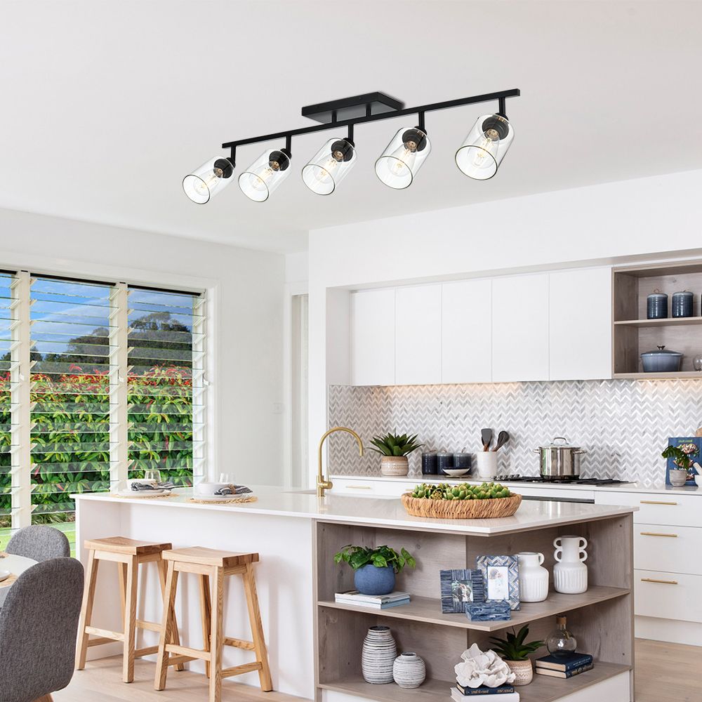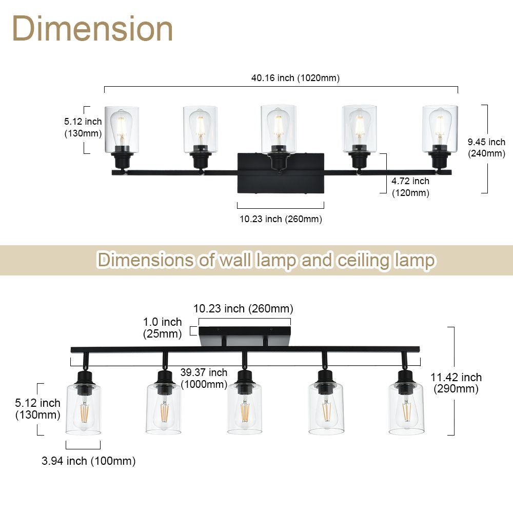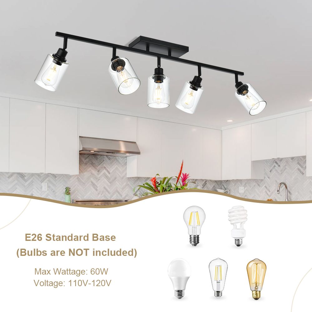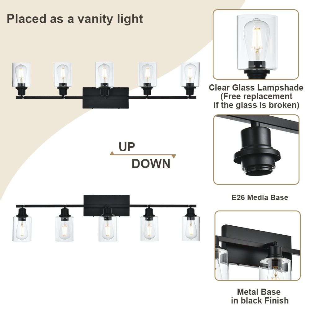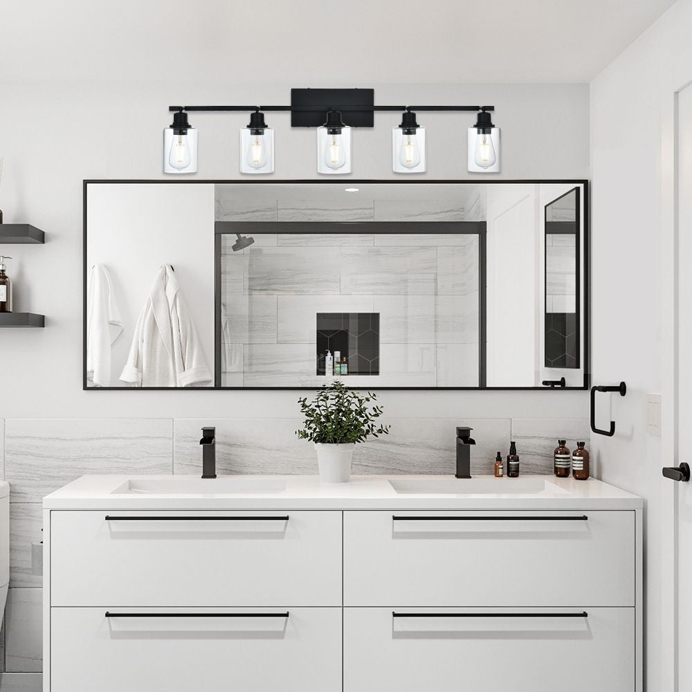 Crafted from durable, corrosion-resistant metal with a sleek modern finish, this fixture features five clear glass cylindrical shades that elegantly display filament or LED bulbs. Adjustable spot heads rotate and pivot for custom lighting angles, ideal for makeup, shaving, or general ambiance. Detailed installation instructions and all mounting hardware ensure easy setup. Each component is designed for longevity, with easy-care surfaces and robust electrical safety. When you choose Trufairs, you receive certified lighting, fast shipping, and peace of mind with every purchase.