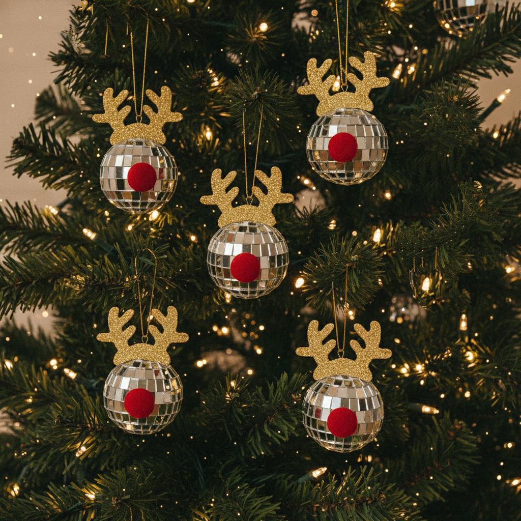 Turn any room into the ultimate party with this 5-Piece Christmas Silver Disco Mirror Ball Set featuring shimmering, hanger-able disco balls and bright elk horns design. These shiny disco balls feature vintage style and modern flair for Christmas: Our timeless shape is a stylish addition to your decor, these great decorations are wonderful for kids' parties as well as intimate holiday decorations that will inspire you. It captures and reflects light, glittering when exposed to light; add a bit of stylish decoration to your living room. Elk horns xmas ball ornament These ornaments not just on source a touch of woodland whimsey to the sleek mirror finish, but also make them perfect for display at Christmas and special events all year round. With simple hanging ribbons already attached, these pretty but solid ornaments instantly add a touch of fun to your other decorations thanks to their shiny and highly reflective surfaces combined with the interesting theme.
