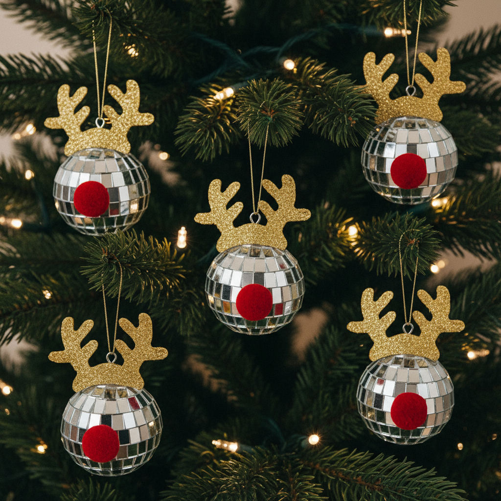 5-Piece Christmas Silver Disco Mirror Ball Set with Rope & Reflective Elk Horns Design for Dance Music Festivals Decor | Trufairs