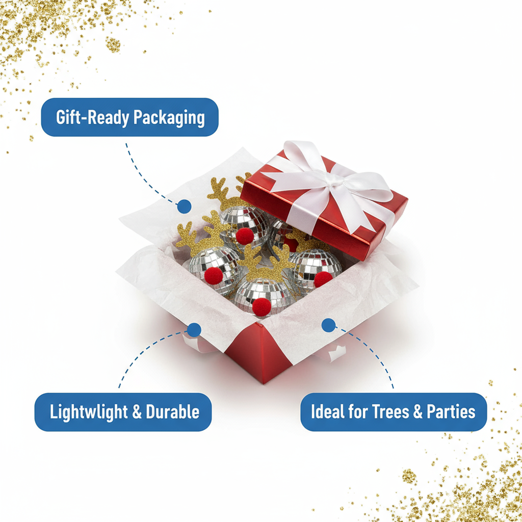 These disco ball ornaments are designed for effortless decorating and simple storage. The integrated rope hangers make installation quick and secure on Christmas trees, ceiling hooks, or display stands. The lightweight construction ensures safe hanging without risk of falling or damage, while the durable plastic material resists breaking and tarnishing. Cleaning is straightforward - simply wipe with a soft, dry cloth to maintain the brilliant reflective surface. After your event, the balls store compactly in their original packaging or any organized container, ready to bring sparkle to your next celebration.