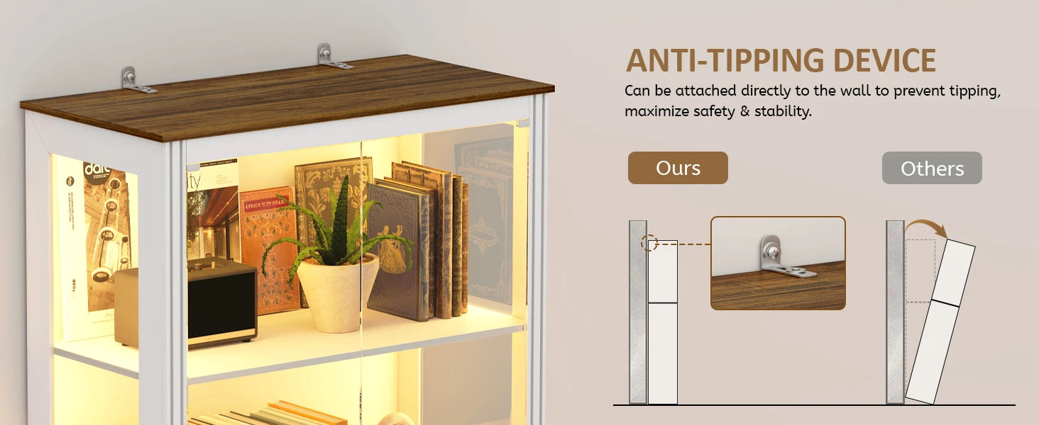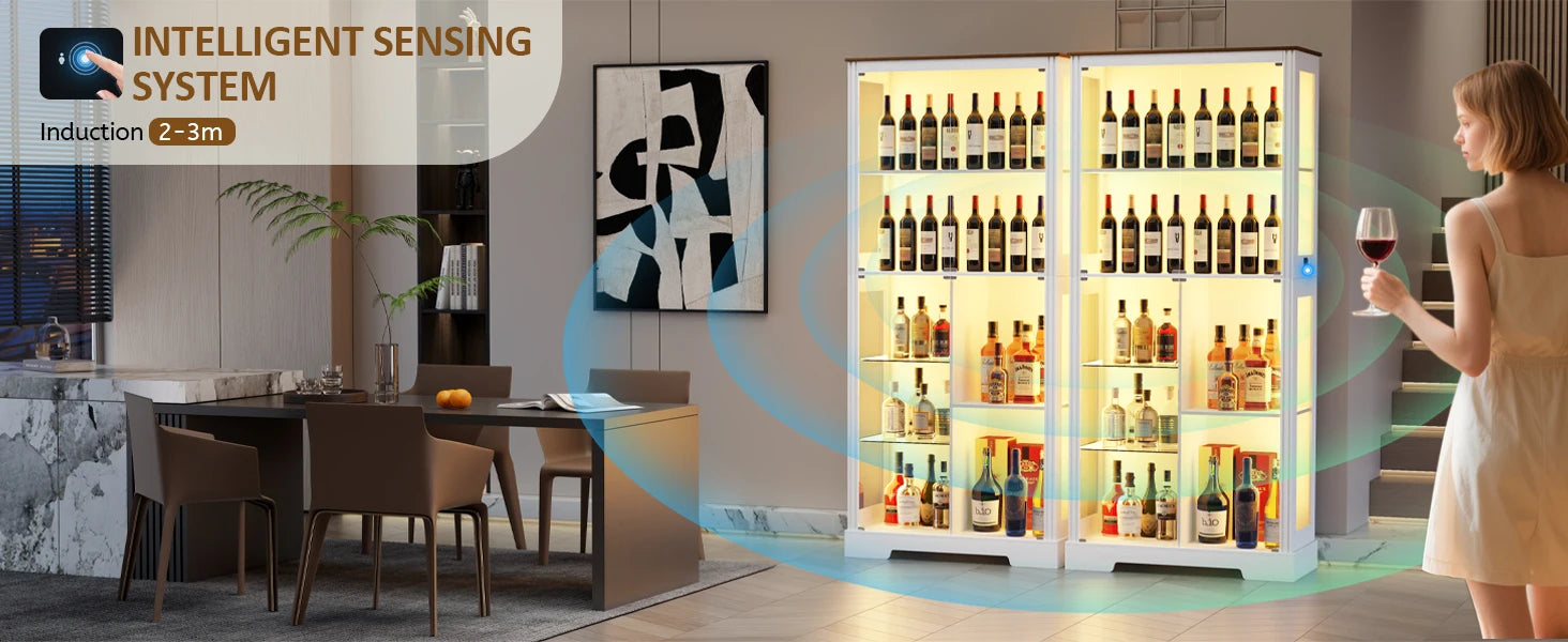 71” Display Cabinet with Glass Doors, Modern Curio Cabinet with 3 Color Lights, 7-Tiers Glass Display Cases for Collectibles,