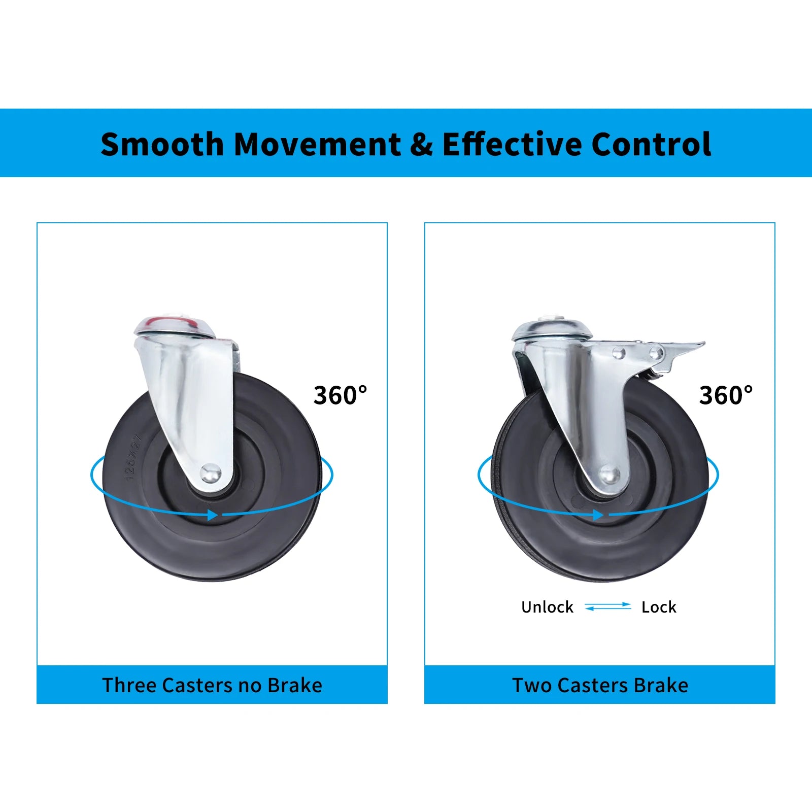 Five 360 degree swivel wheels for smooth mobility
