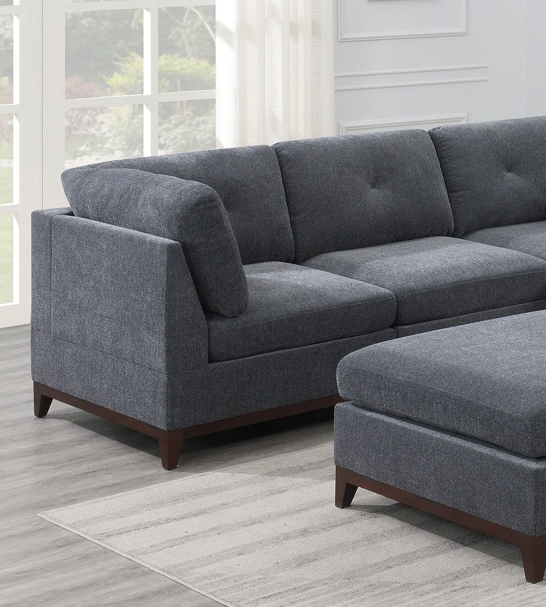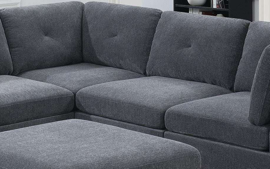 Ash Grey Chenille Fabric Modular Sectional 6pc Set Living Room Furniture Corner Sectional Couch 3x Corner Wedge 2x Armless Chairs and 1x Ottoman Tufted Back