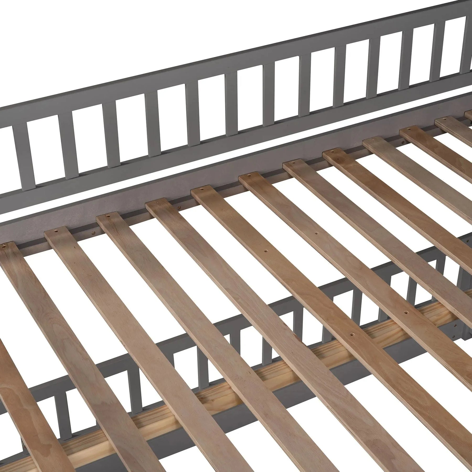 [Sturdy and Durable Bed Frame]: Crafted with superior quality solid pine wood bed frame, this slide bunk bed frame is sturdy and solid, sturdy wood construction, no squeaks, and wobbles when you are going up or down. 14 plywood slats for upper bunk, no box spring is needed.