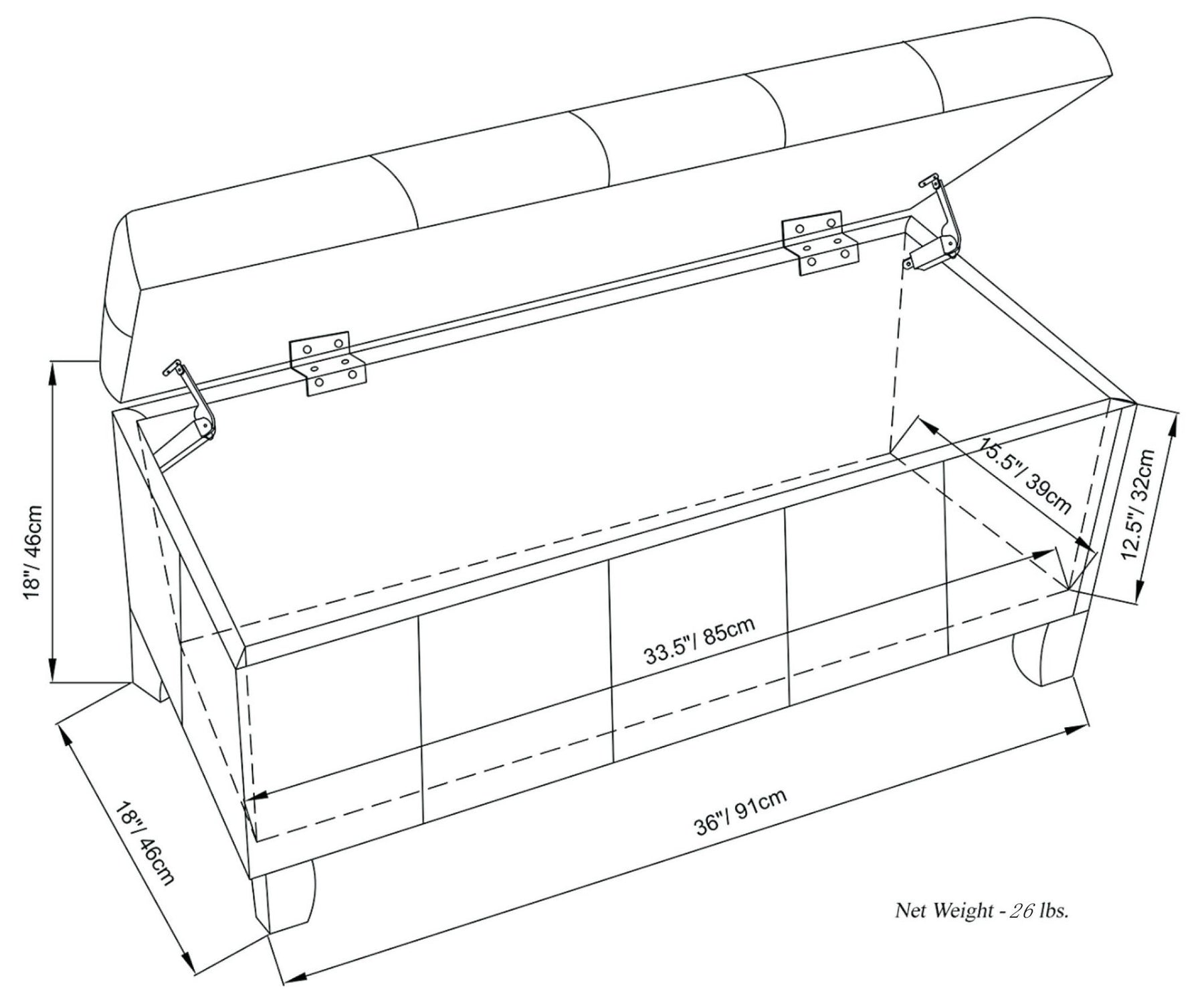 Enjoy robust construction and lasting comfort with the Contemporary Faux Leather Storage Bench. Crafted from solid wood and engineered wood, the bench is generously padded with high-density foam and wrapped in durable vegan faux leather for a warm, inviting touch. It measures 18in high by 36in wide by 18in deep—perfect proportions for versatile use in any room. The inner storage compartment is spacious yet discreetly designed for easy access, supported by a soft-close child safety hinge to prevent slamming. Reliable, simple assembly, and easy care (just spot clean and wipe legs) make this Trufairs exclusive an easy upgrade for modern homes. Choose Trufairs for durability, affordable elegance, and a trusted home shopping experience.