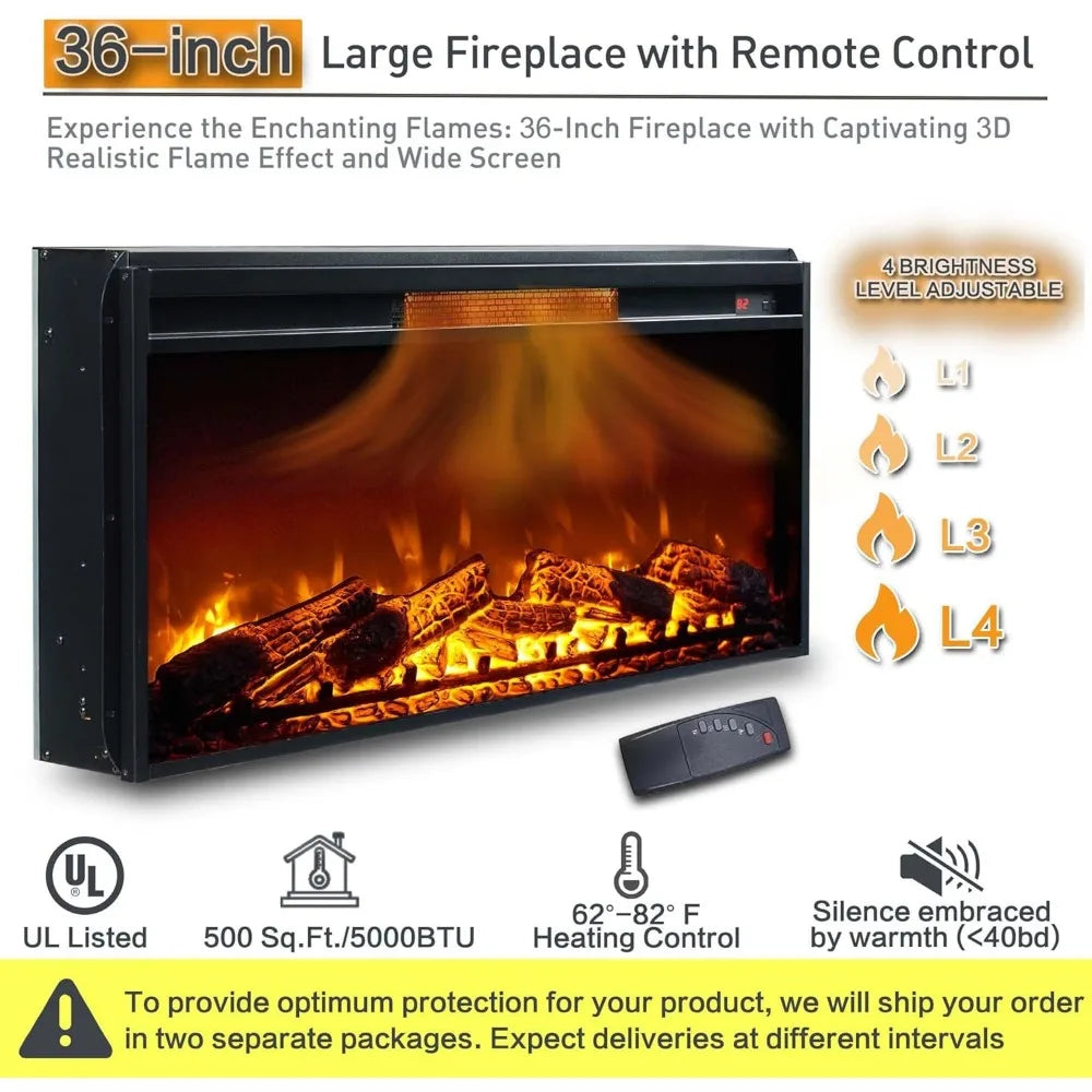 - 3D Flame Effect: Experience the warmth and beauty of a 36-inch large screen fireplace with stunning 3D simulated flames. Transform your living space into a cozy retreat, as the lifelike flames flicker and dance, creating a mesmerizing ambiance. The fireplace TV cabinet brings a touch of luxury and relaxation, while adding an elegant centerpiece to your home decor.